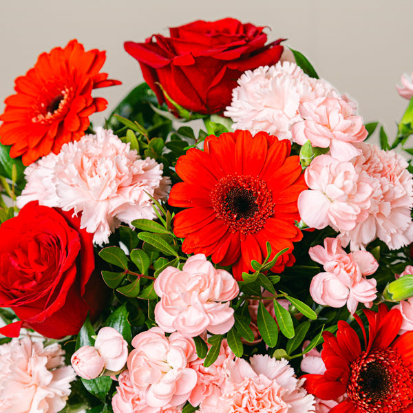 The combination of classic red roses with cheerful gerberas creates a bouquet that is both romantic and joyful. The vibrant red color symbolizes passion and love, making it a perfect expression of your deepest feelings. Our expert florists hand-arrange each bouquet to ensure a high-quality, visually stunning presentation.