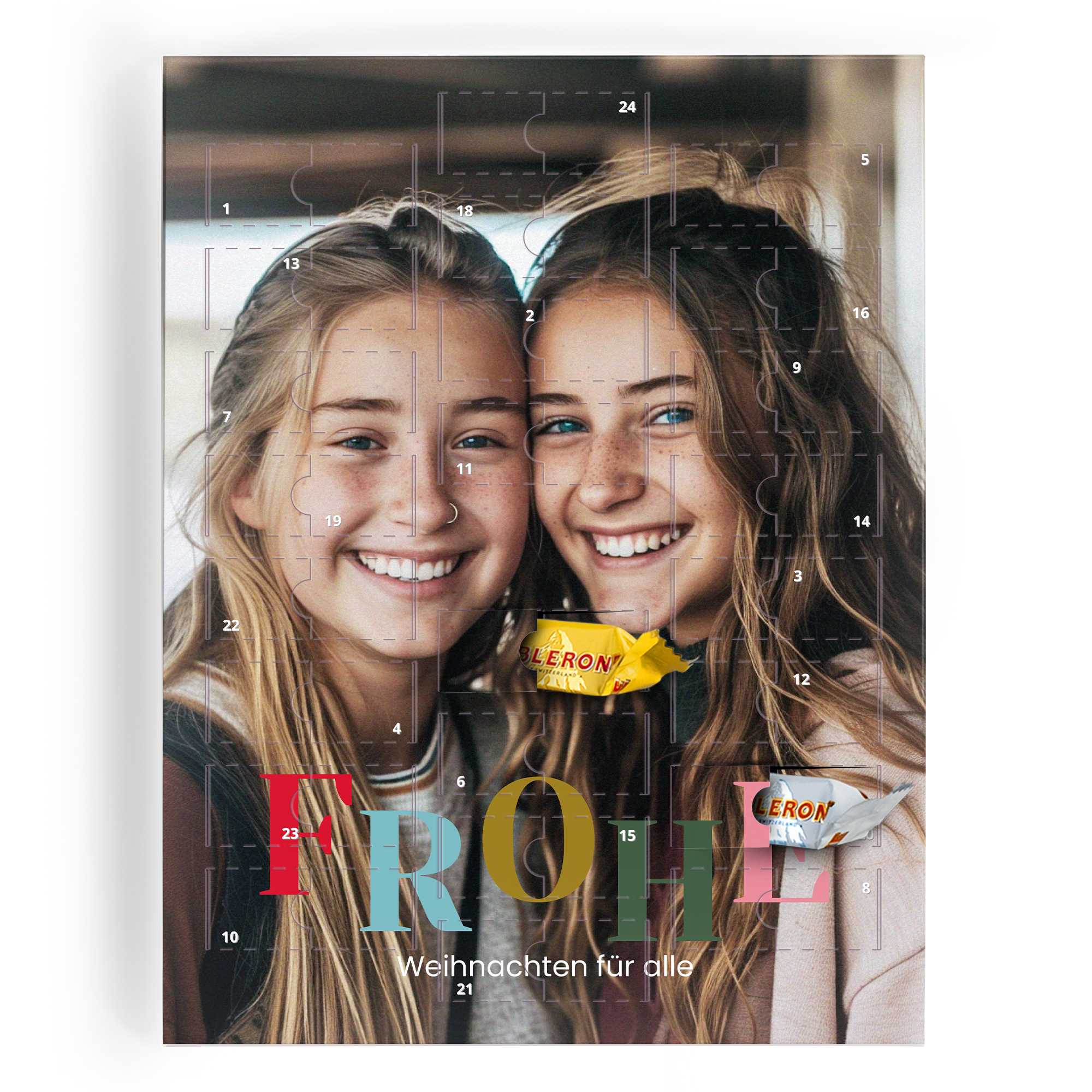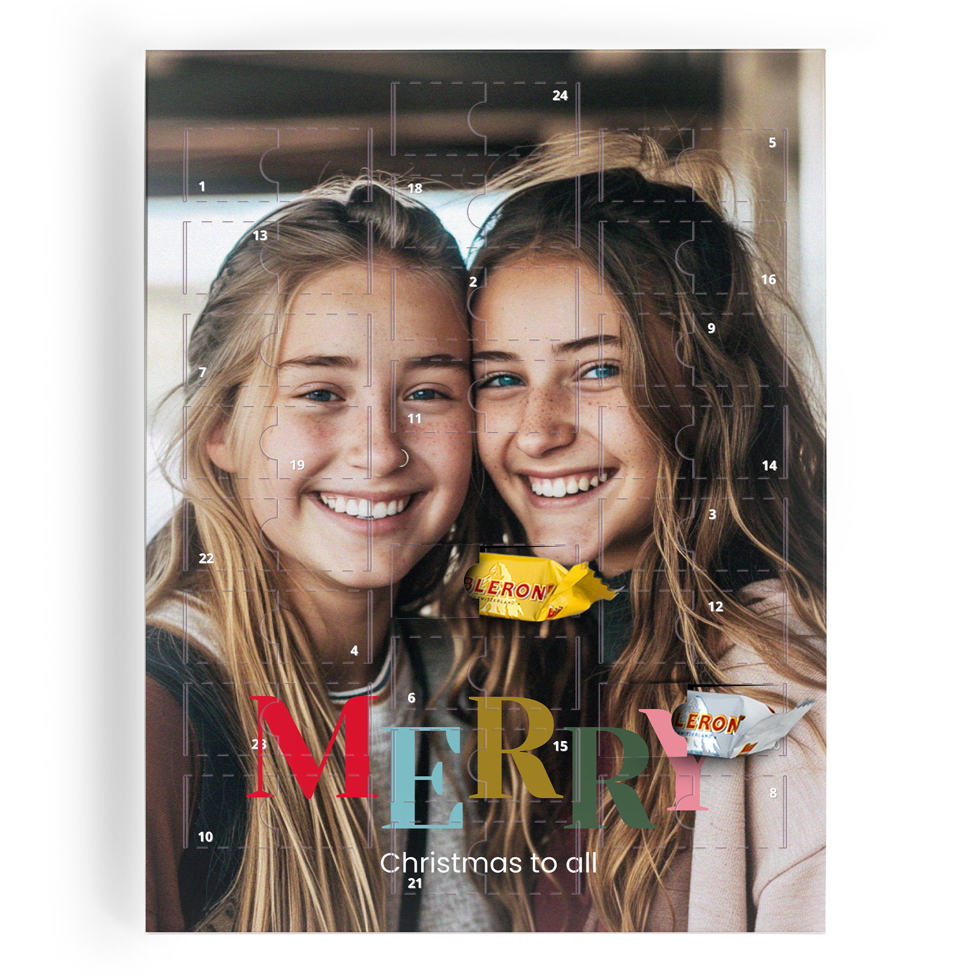 Advent calendar with photo, name and/or text. Filled with 24 delicious Toblerone chocolates - a delicious countdown to Christmas!