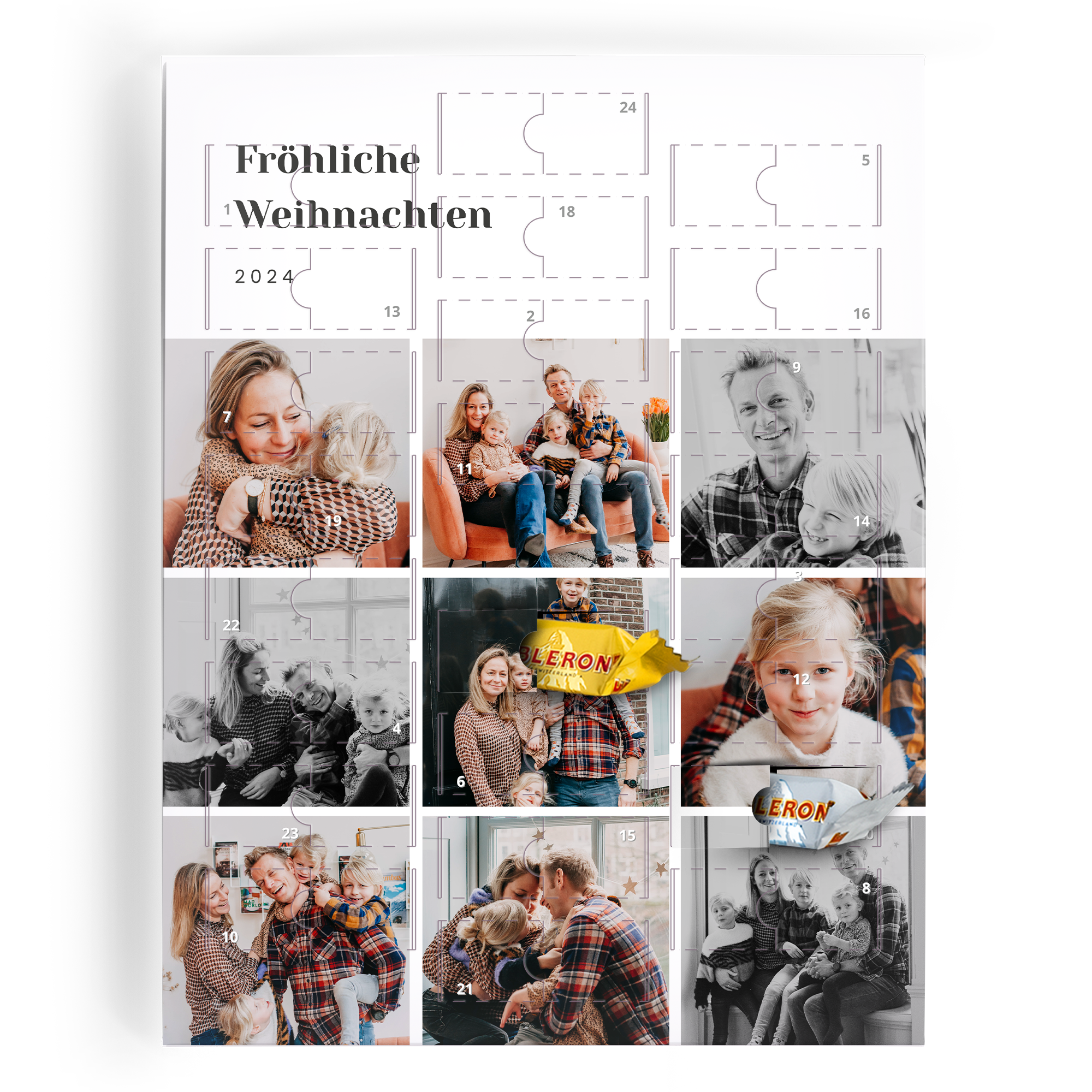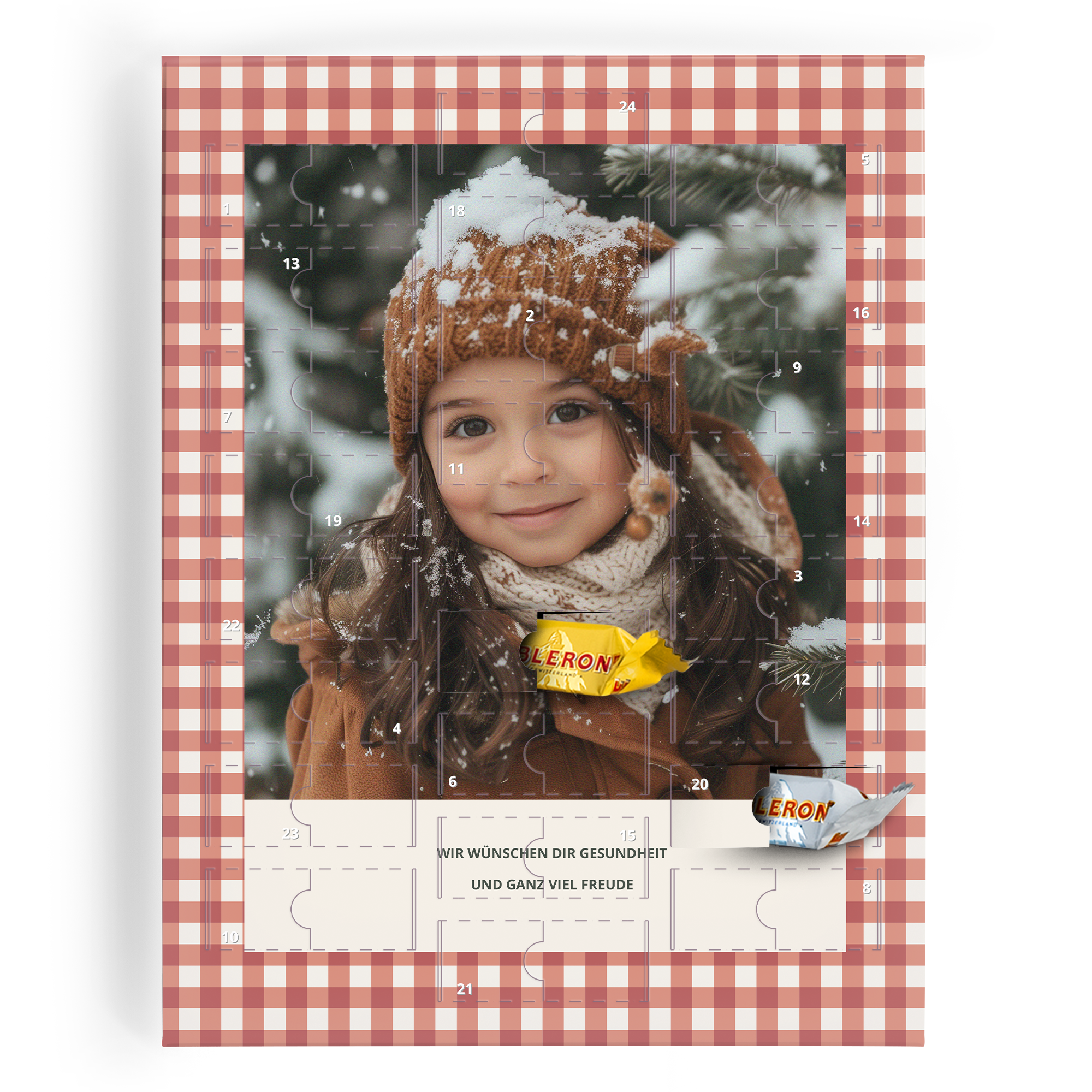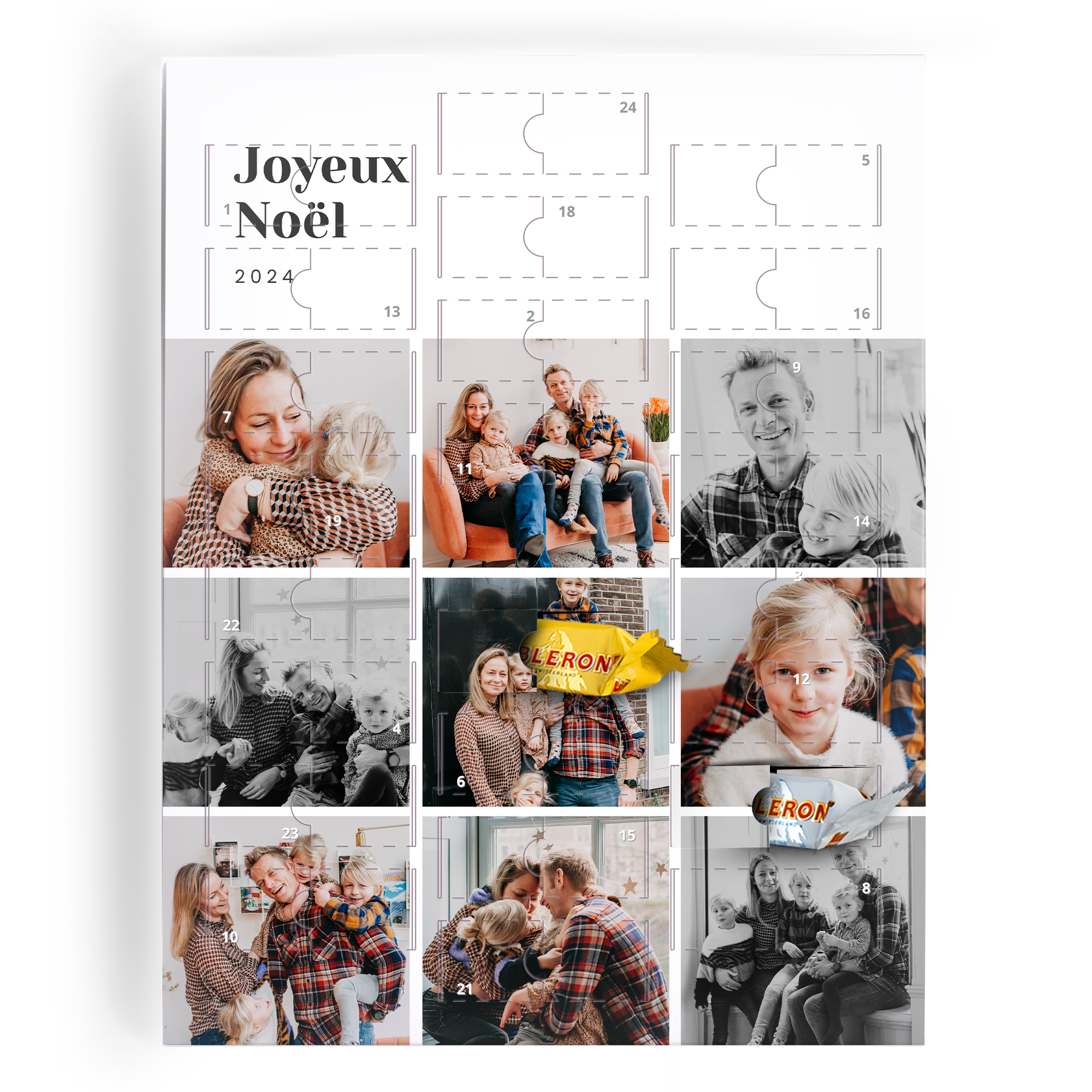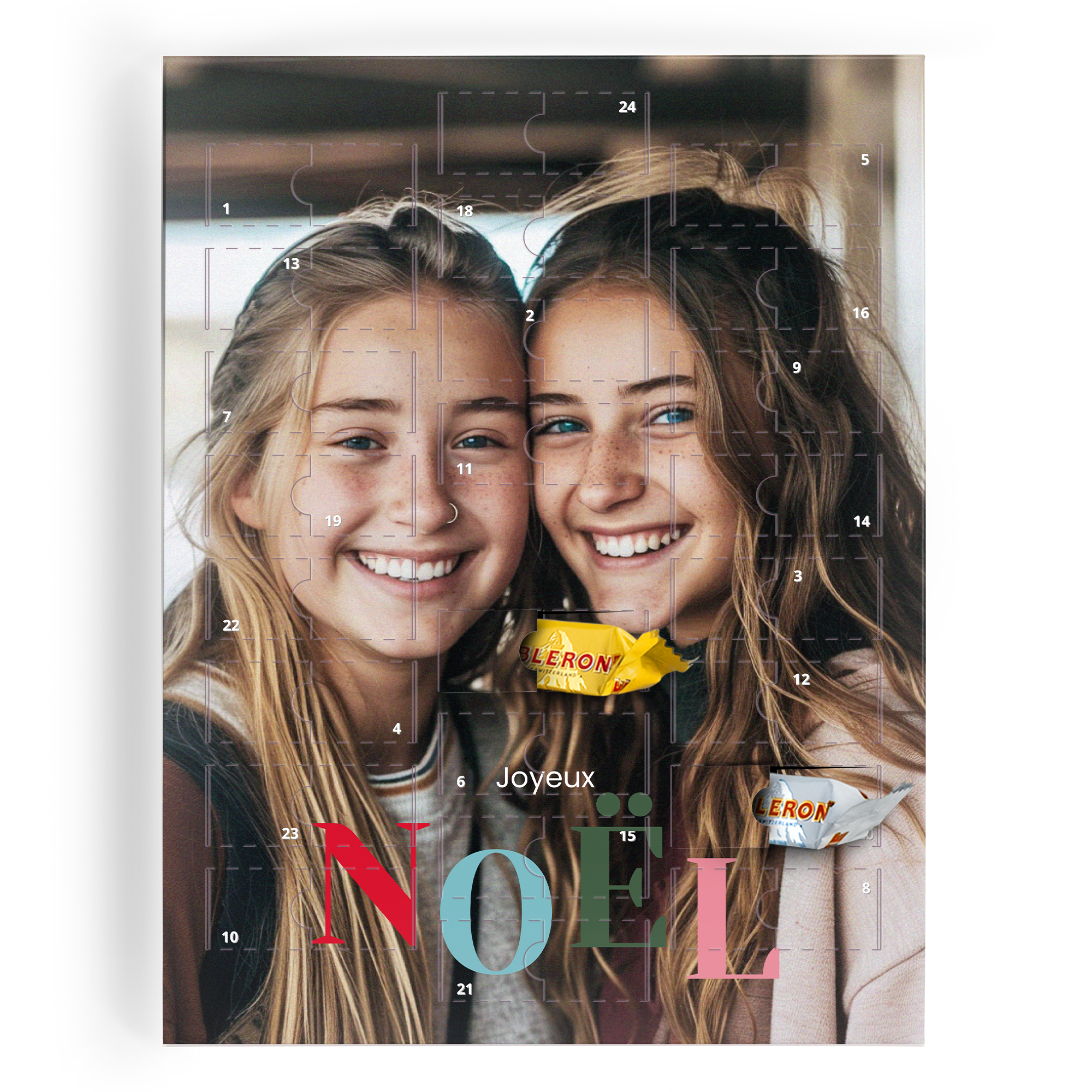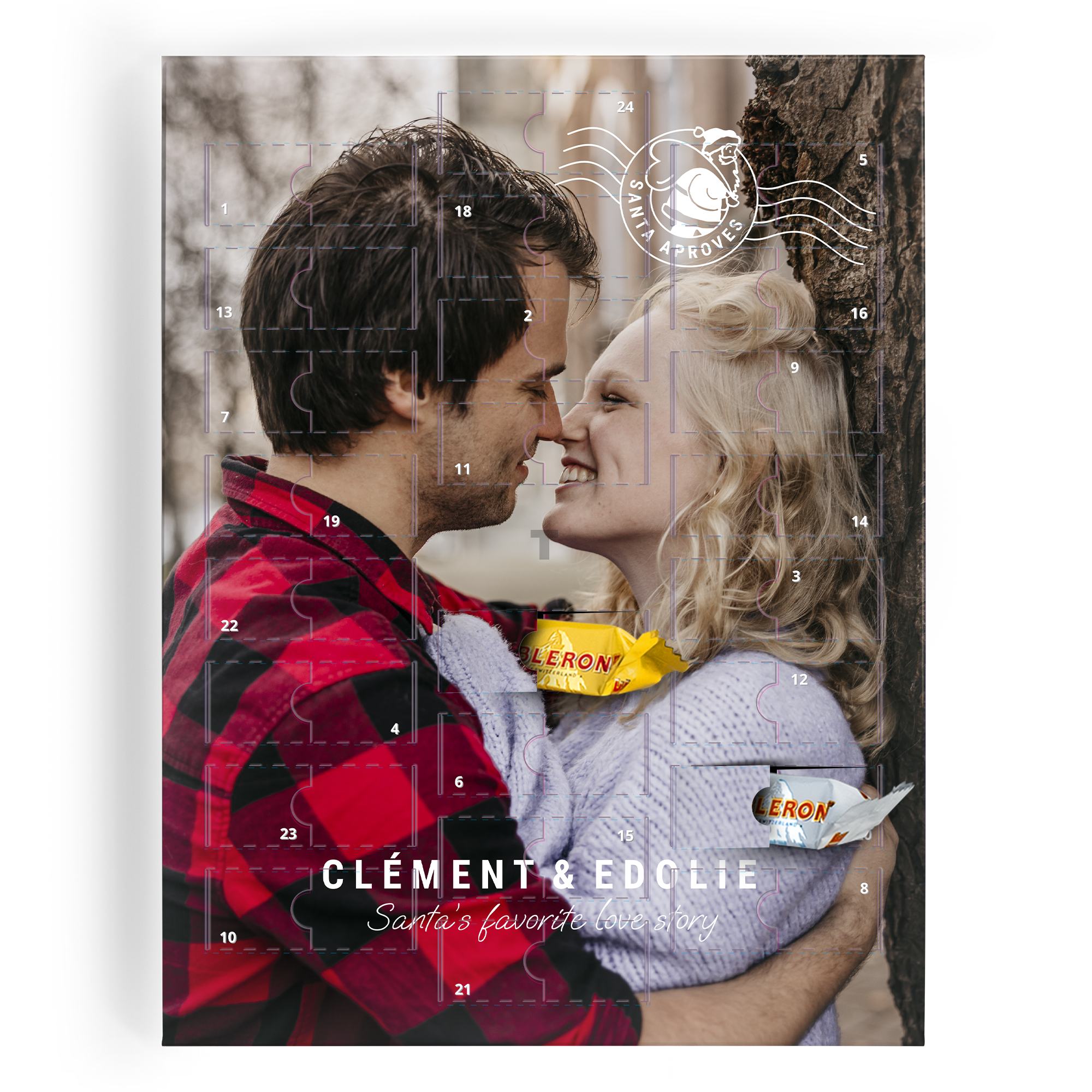 Experience the magic of the holiday season with our Personalised Advent Calendar, a delightful way to countdown to Christmas. Celebrate each day by opening a little door to reveal a sweet surprise. This advent calendar is truly unique, allowing you to personalise it with your favourite photos, bringing a touch of personal warmth to the festive season. Each door opens to reveal a selection of premium chocolates, making every day leading up to Christmas a treat to remember. Crafted with care, this advent calendar is designed to be a cherished part of your holiday traditions. The calendar features high-quality materials and beautiful printing to ensure it stands out in your home. Ideal as a gift or for personal use, this advent calendar is a wonderful way to build excitement and create lasting memories. Add your favourite family photos, names, or holiday messages to make it truly your own. With a perfect blend of fun and festivity, our Personalised Advent Calendar is sure to bring joy to your holiday celebrations.