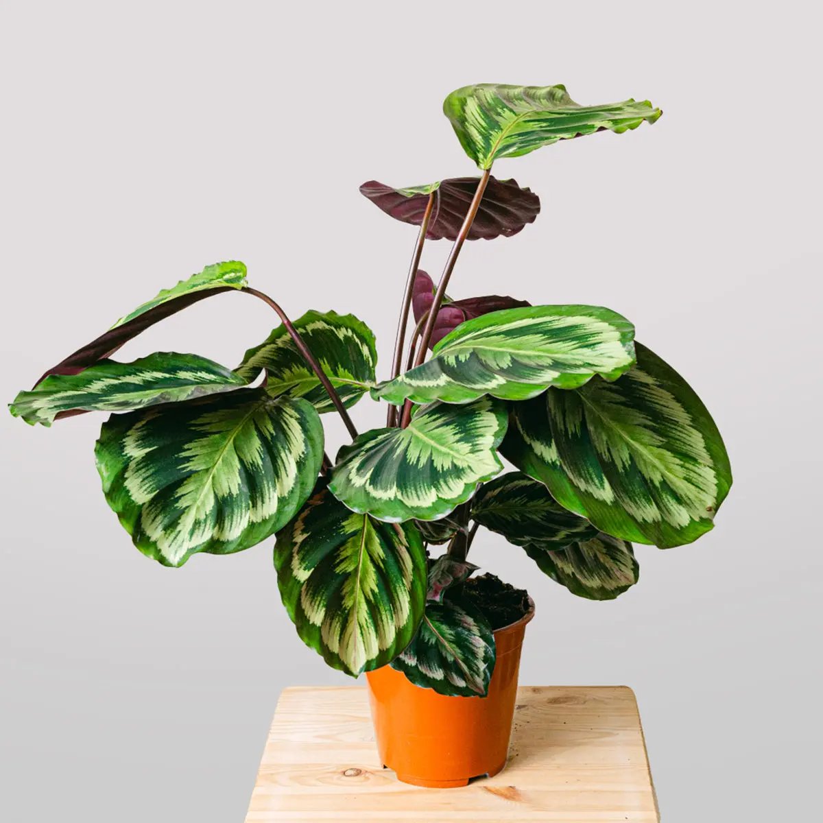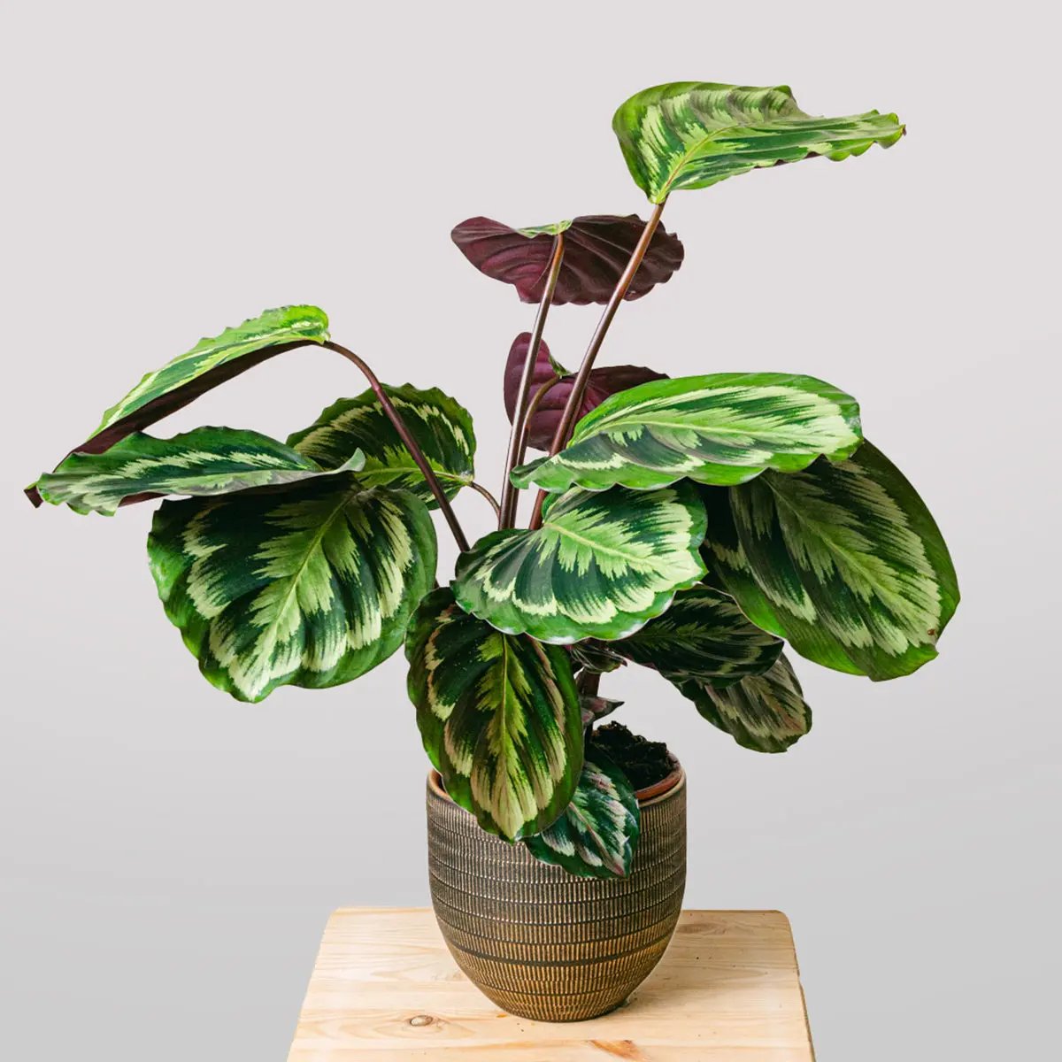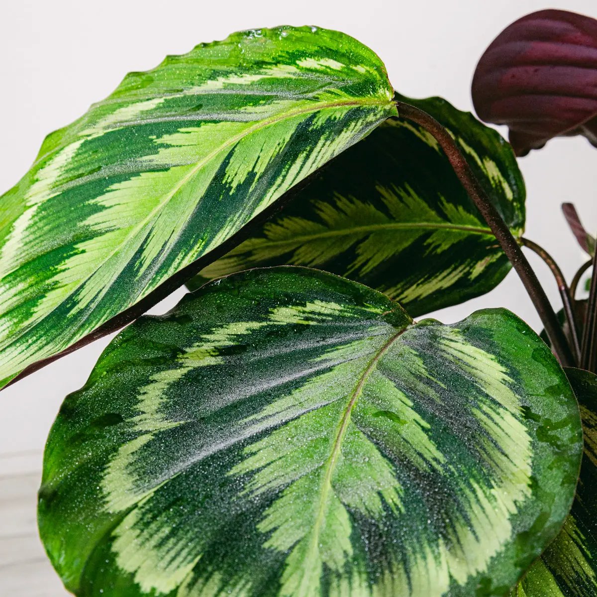 Hailing from Brazil, the Calathea Medallion is a favourite choice for decorating interiors with an exotic touch. Watching its striped leaves fold and open according to the time of day is a sight to behold. A cheerful, purifying plant and a friend to beginners in plant care.