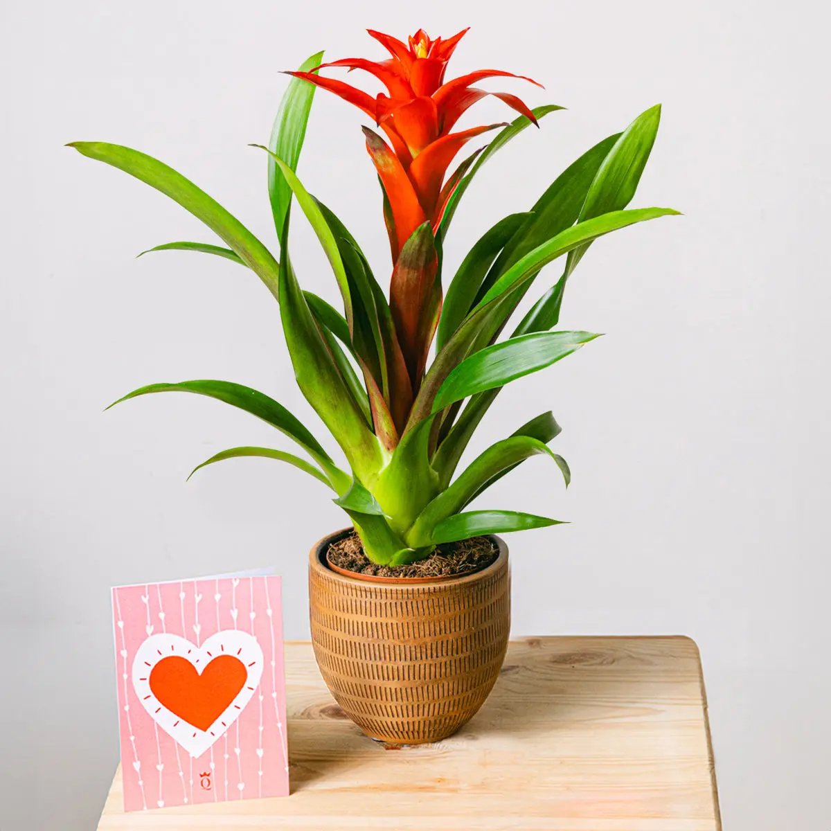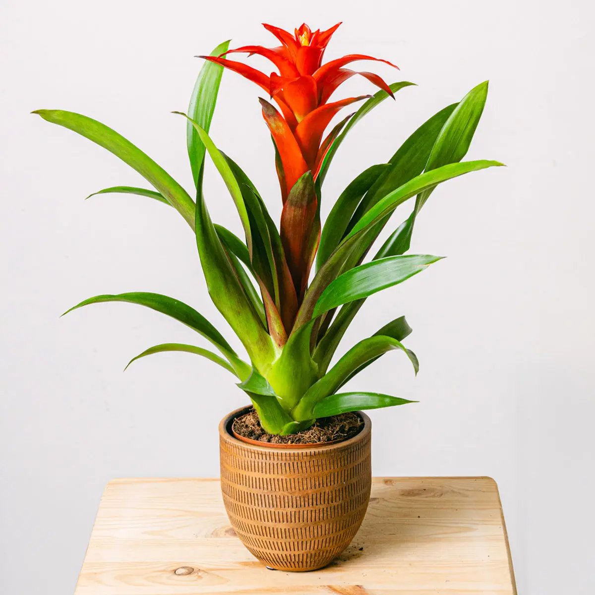 Humedad Ambiental: La bromelia aprecia la humedad. Pulveriza las hojas ocasionalmente o coloca la maceta sobre un plato con guijarros húmedos.