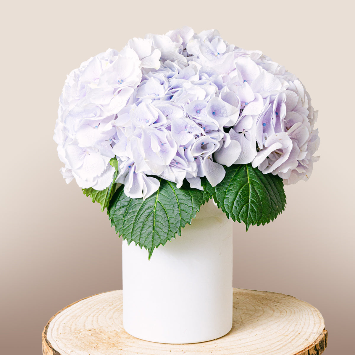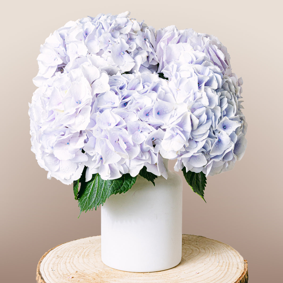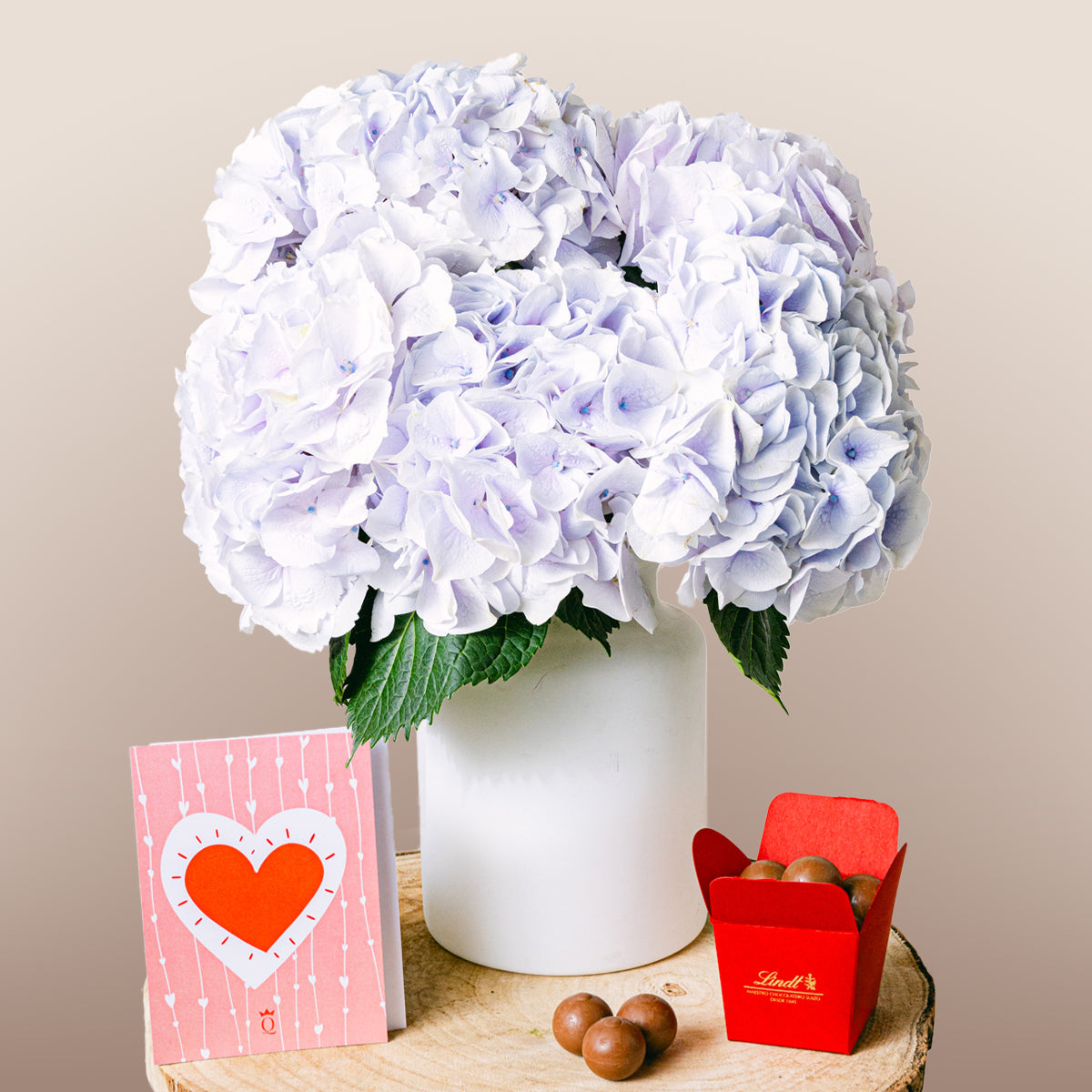 Descubre el encanto de las hortensias azules, una flor que adquiere esta tonalidad tan especial cuando se cultiva en suelos ácidos y absorbe el aluminio que colorea sus pétalos. Un ramo que brilla y sorprende como si de un impresionante zafiro se tratara, donde el amplio volumen de sus tallos habla de exuberancia, armonía y confianza. Su tonalidad también transmite ideas vinculadas a lo espiritual y misterioso, convirtiéndolo en una opción perfecta para los amantes de lo poco convencional.