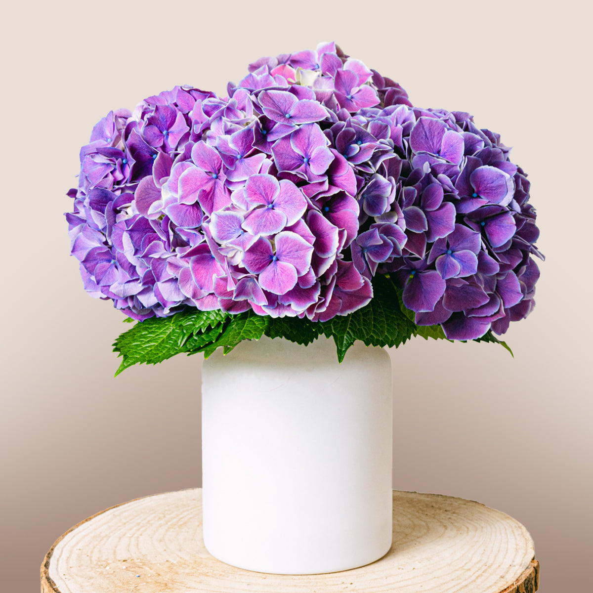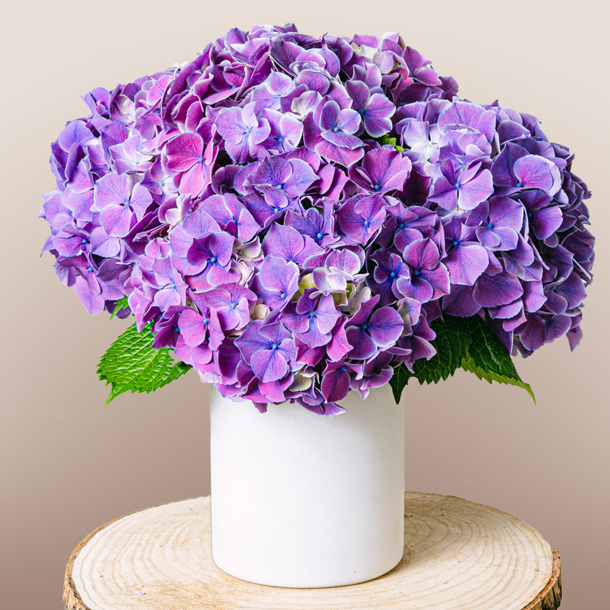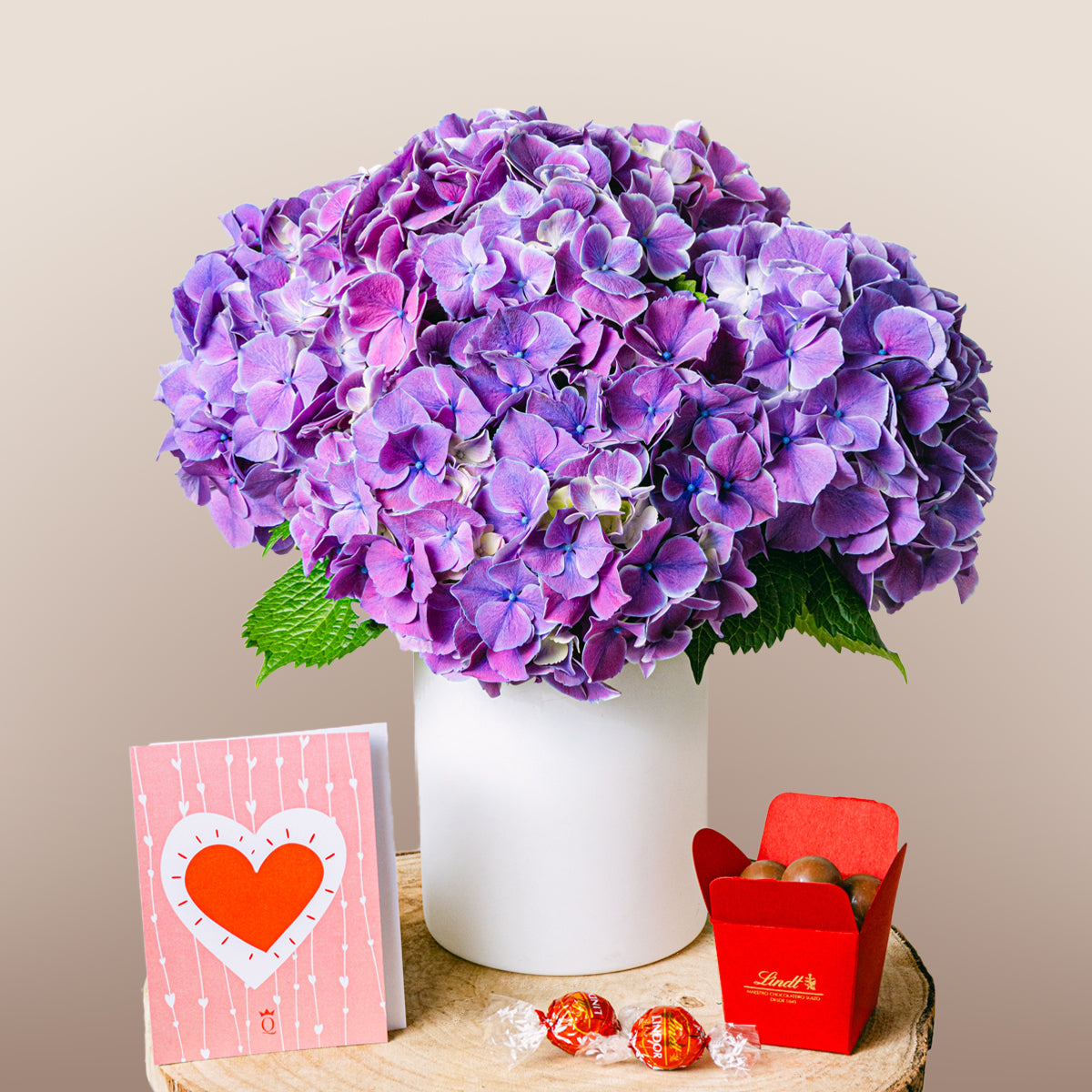 El color púrpura evoca riqueza y lujo, inspirando creatividad y magia. Las hortensias simbolizan gratitud, positividad y generosidad, creando un ramo lleno de significado y belleza.