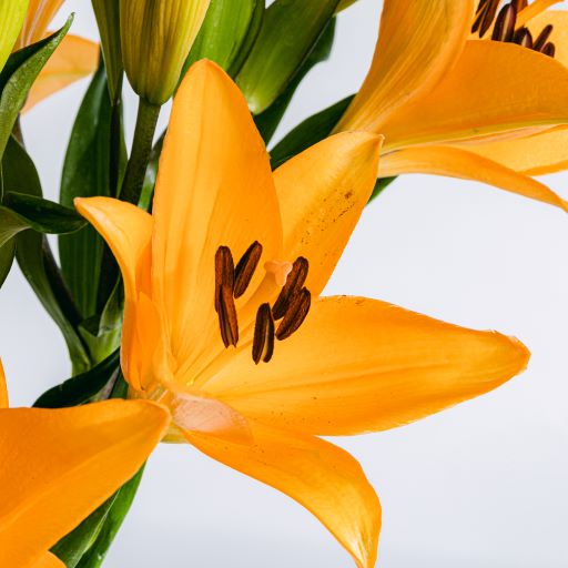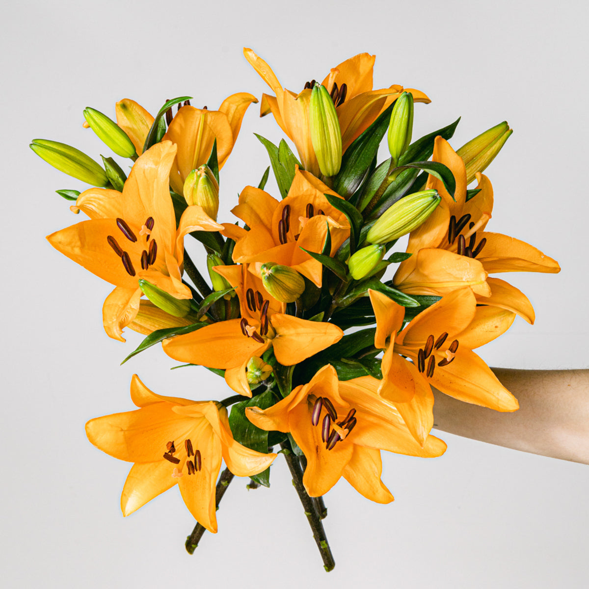 Los lirios naranja simbolizan energía, pasión y entusiasmo. Este ramo es perfecto para celebrar logros y enviar un mensaje de éxito y admiración. Su vibrante color ilumina cualquier espacio, transmitiendo optimismo y alegría.