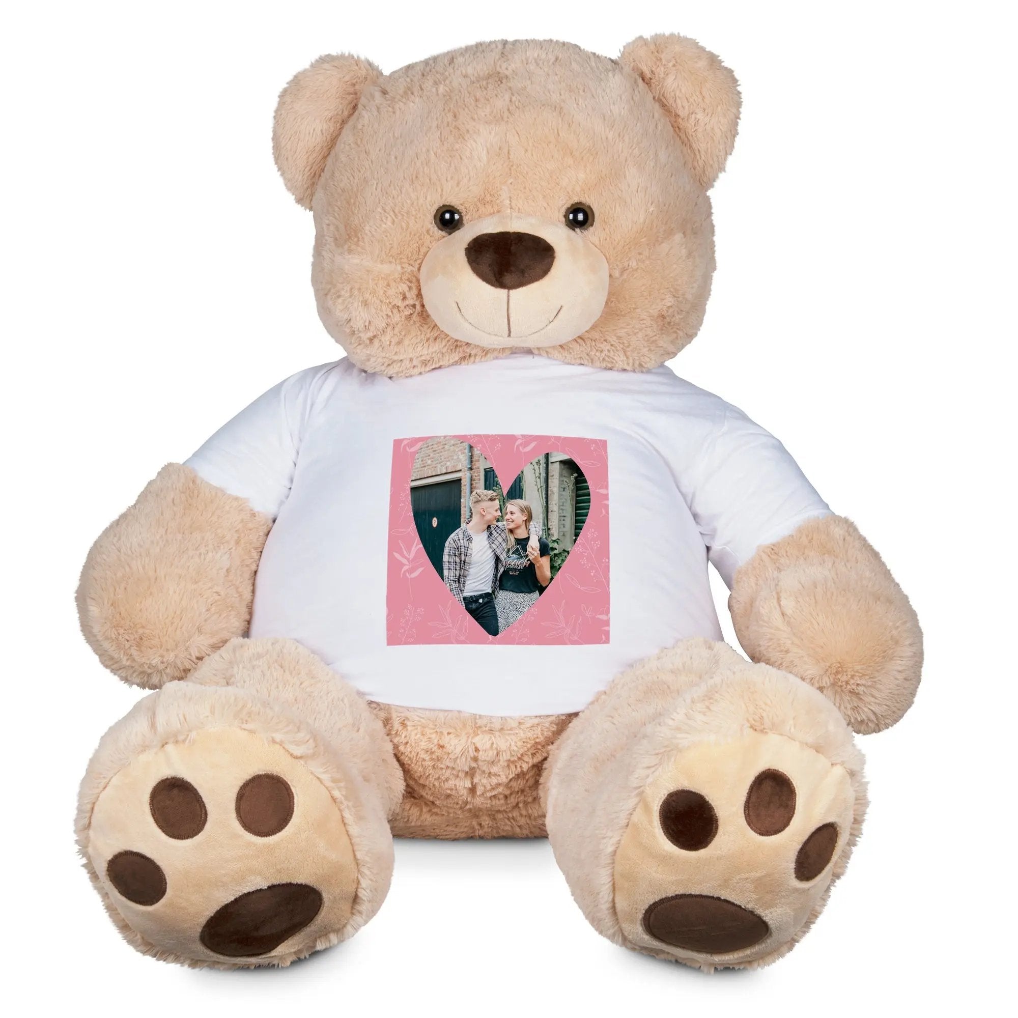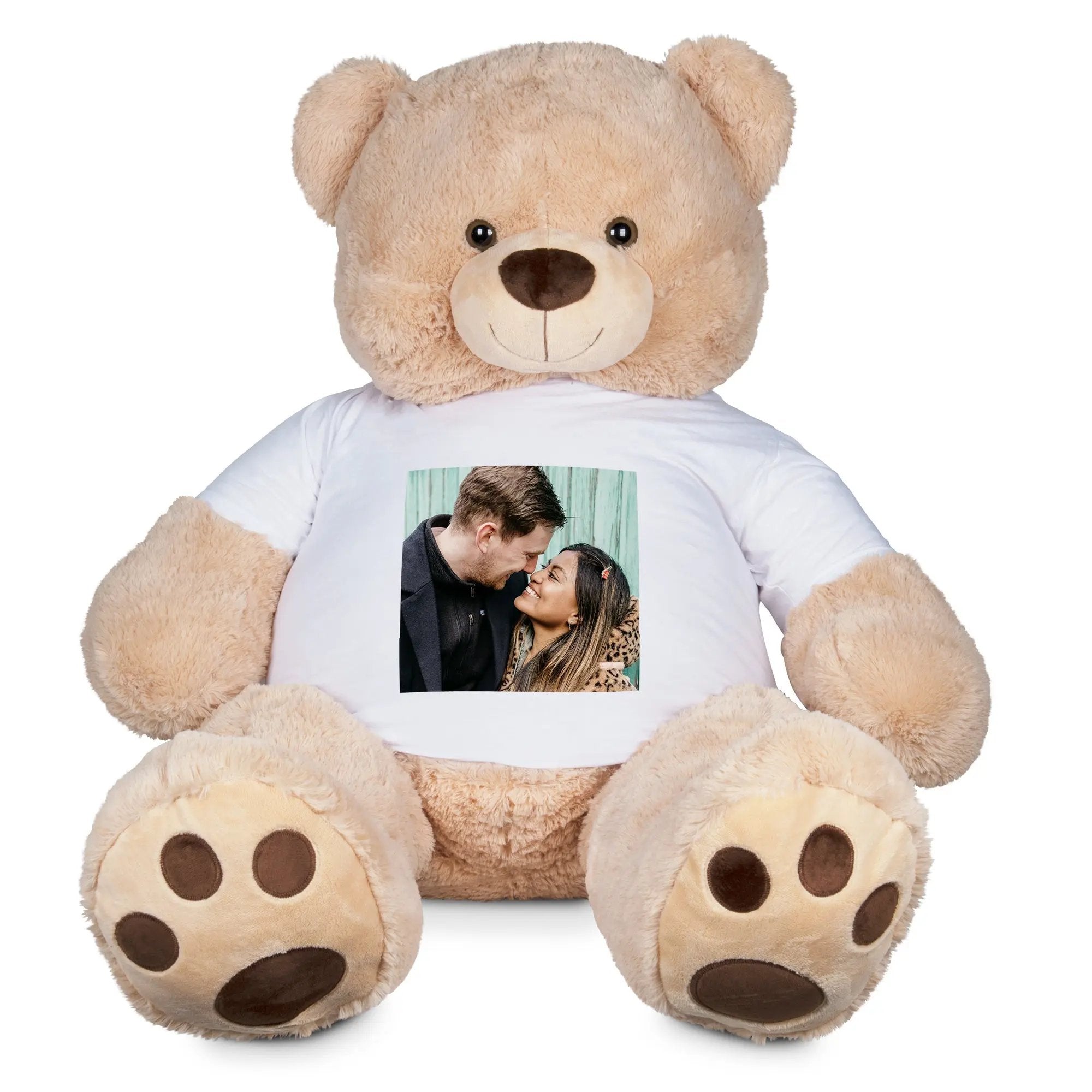Este mega oso es el regalo perfecto para expresar amor y cariño de una manera impactante. La camiseta personalizada lo convierte en un recuerdo único y especial que será apreciado durante años.