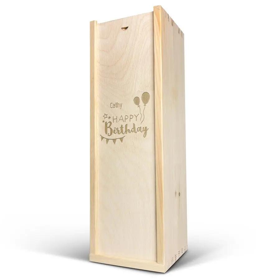 Más información sobre la personalizaciónPersonalización: con nombre o texto Método de personalización: grabado láser de alta calidadColor del grabado: marrónDimensiones de la caja: 36.5 x 12 x 11 cmExtra: la caja de madera está certificada por FSCMás detalles sobre la ginebraNombre: Sadler's Peaky BlinderTipo de ginebra: seca especiadaContenido: 700 mlPaís: Inglaterra Porcentaje de alcohol: 40% Característica: la ginebra Peaky Blinder es una ginebra seca con hierbas y especias exóticas, como jengibre, pimienta negra y canela.