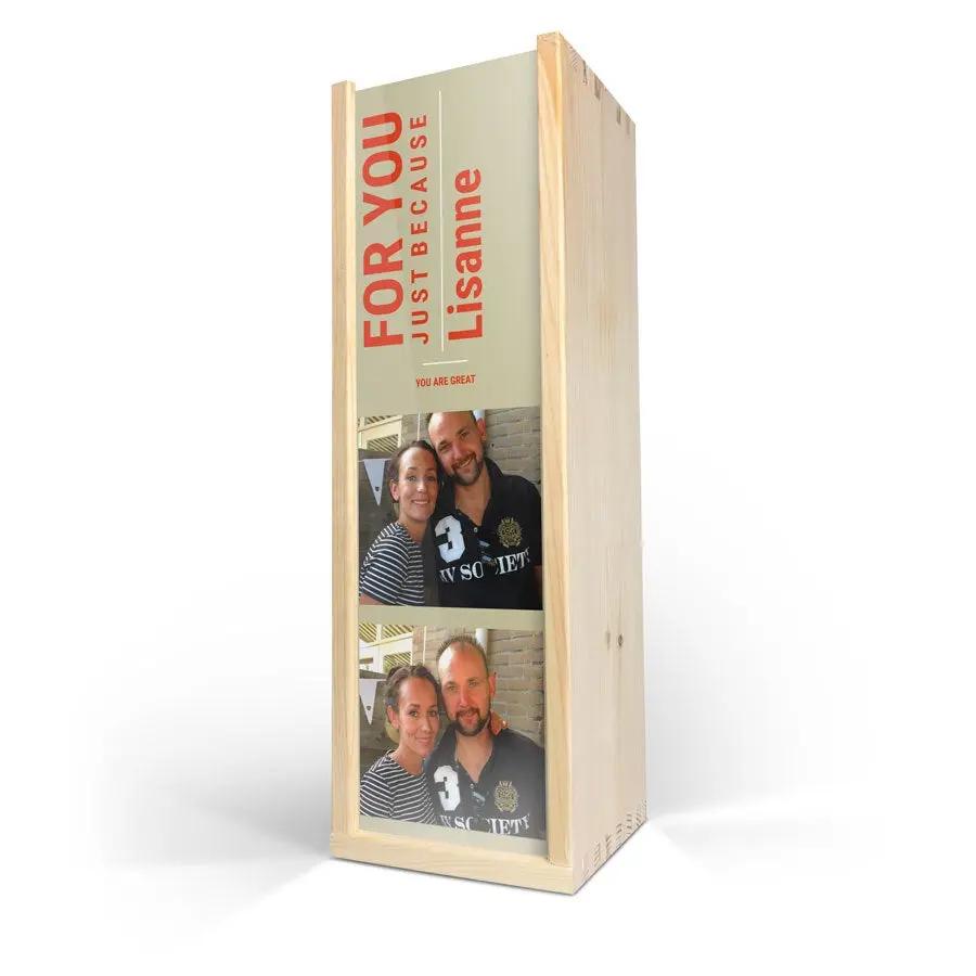 - El estuche de madera personalizado, que permite añadir un mensaje o diseño especial para el destinatario.