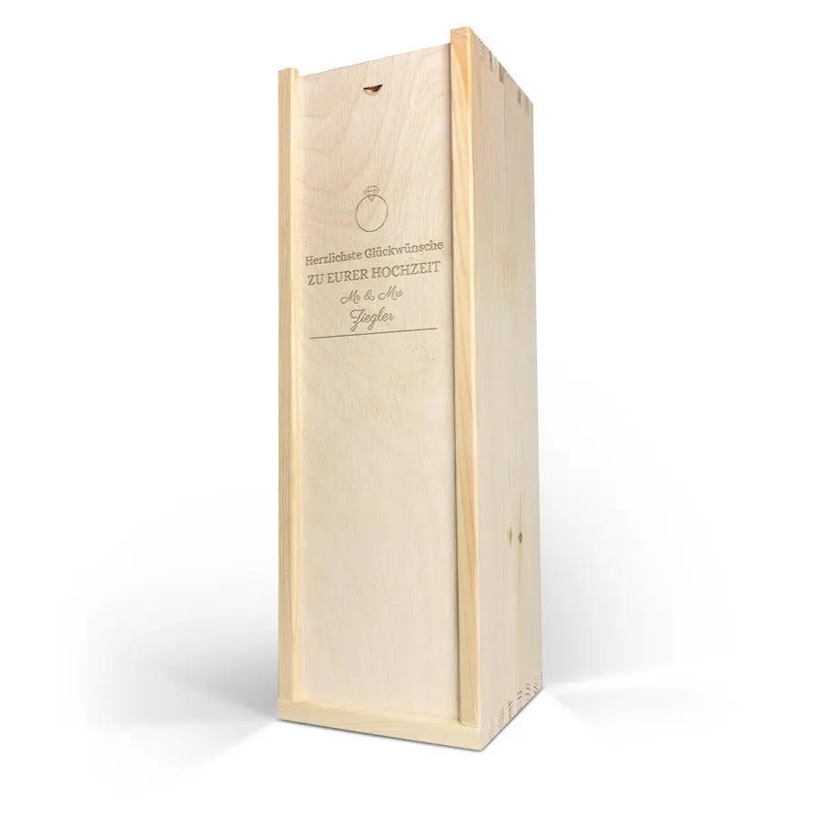 Un regalo sofisticado que combina un excelente vino francés con un toque personal y único. El estuche de madera con grabado láser convierte este regalo en un recuerdo duradero.