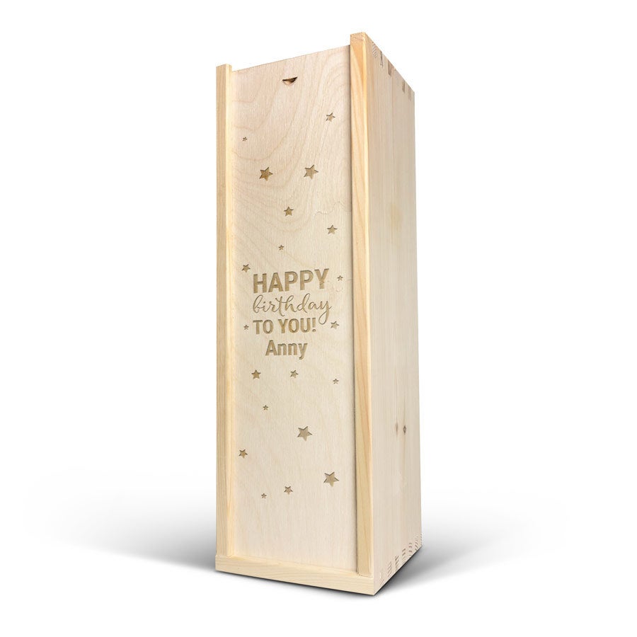 El estuche de madera grabado añade un toque personal y exclusivo, convirtiendo este regalo en un recuerdo único e inolvidable. Ideal para celebrar cumpleaños, aniversarios o momentos especiales.