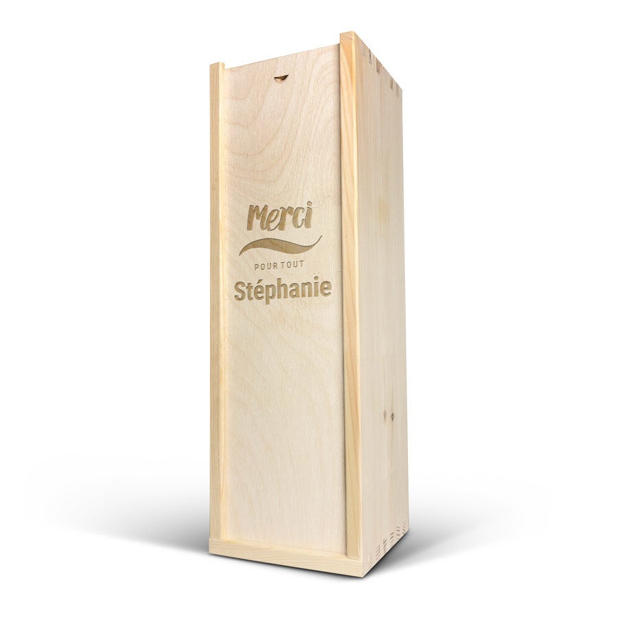 Una deliciosa botella de champán Moët & Chandon, verdaderamente personalizada en una lujosa caja grabada con tu nombre o texto favorito. Grabado con precisión.