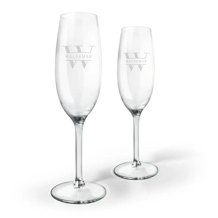 Una rica botella de champán Moët et Chandon con dos copas grabadas. En una lujosa caja de madera, el regalo perfecto. ¡Salud!