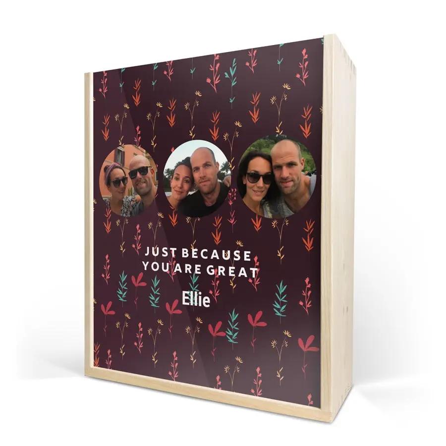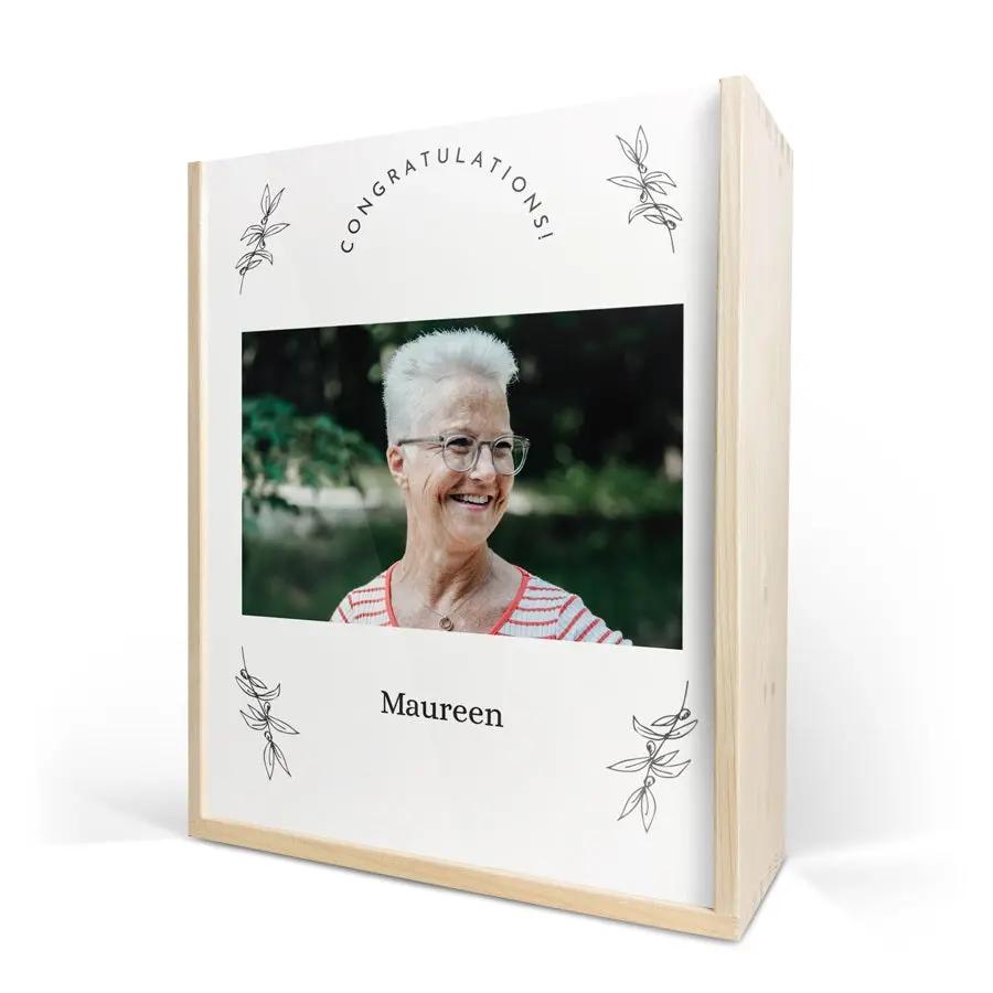 Más información sobre las copas de champán:Número: 2 piezas Marca: Royal Leerdam Tipo: L'esprit Altura: 21.5 cm Contenido: 21 cl Más información sobre el lujoso estuche de madera:Personalización: con foto, collage, logo, nombre y/o textoColocación de la personalización: en la tapa de la caja de madera Impresión: imagen perfecta y a todo color Dimensiones de la caja: 36.5 x 12 x 11 cmDimensiones de la tapa: 35,6 x 10,5 x 0,3 cm Extra: la caja de madera está certificada por el FSC.Más información sobre el champán:Nombre: Moët & ChandonTipo de vino: espumosoContenido: 750 ml País de origen: Francia Variedad de uva: Pinot Noir, Chardonnay, Pinot Meunier
