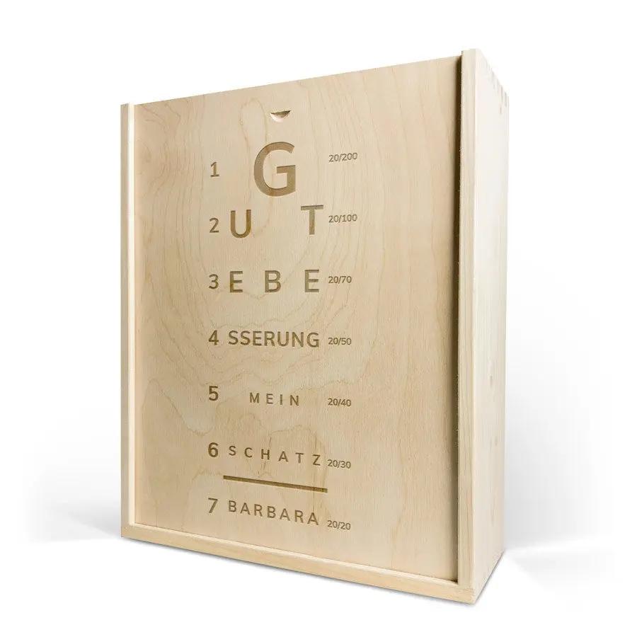 Más información sobre las copas de champán:Cantidad: 2 copasMarca: Royal LeerdamModelo: L'EspritDiámetro: 6,5 cmAltura: 21,5 cmCapacidad: 21 clExtra: apto para lavavajillas Más información sobre la lujosa caja de madera:Personalización: con nombre o textoUbicación de la personalización: en la tapa de la caja de maderaMétodo de personalización: grabado láser de alta calidadDimensiones de la caja: 36,5 x 12 x 11 cmDimensiones de la tapa: 35,6 x 10,5 x 0,3 cmExtra: la caja de madera es FSC-certificadaMás información sobre el champán:Marca: Moët & ChandonTipo: seco, espumosoContenido: 750 ml País de origen: FranciaUva: Pinot Noir, Chardonnay, Pinot MeunierCaracterística: Con aromas de flor de lima, masa de pan y tostadas. Vibrante y suave. Acompaña bien a las ostras.