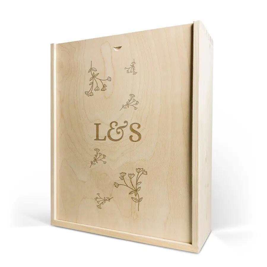 Más información sobre las copas de champán: Número: 2 piezas Marca: Royal Leerdam Tipo: L'esprit Altura: 21.5 cm Contenido: 21 cl Más información sobre la lujosa caja de madera: Personalización: con nombre o texto Lugar de la personalización: en la tapa de la caja de madera Impresión: grabado láser de alta calidad Dimensiones de la caja: 36,5 x 30,6 x 11 cm Dimensiones de la tapa: 35,6 x 28,4 x 0,3 cm La madera en la caja tiene la etiqueta FSC sostenible Más información sobre el vino: Nombre: Riondo Prosecco Spumante Tipo de vino: prosecco, extra dry Contenido: 750 ml País de origen: Italia Variedad de uva: chardonnay, glera Carácter: Riondo Prosecco Spumante tiene aromas de pera, manzana, caramelo y flores blancas. Delicioso con camarones y tapas saladas.