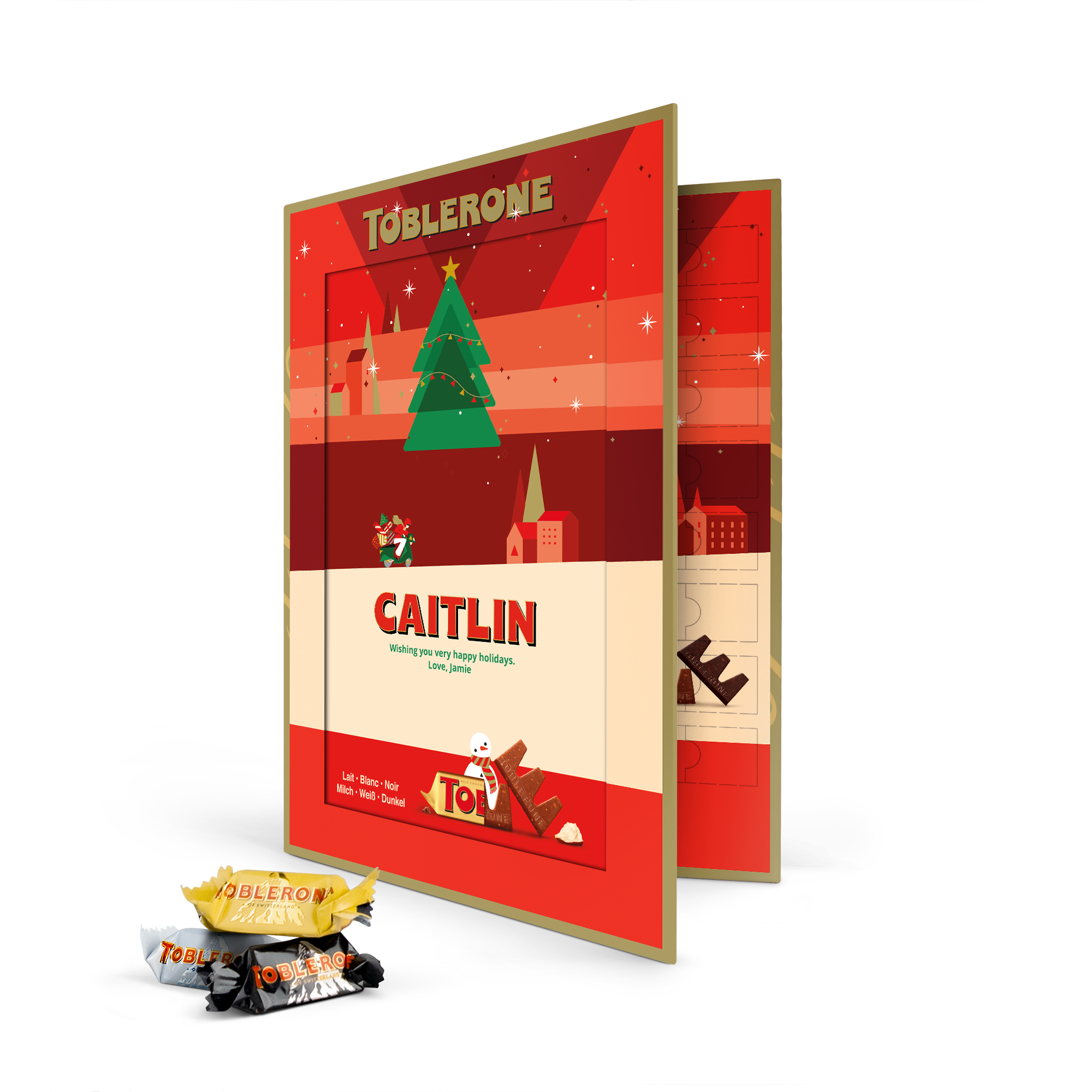 Para aquellos que aman un toque personalizado, el Calendario de Adviento Toblerone te permite contar los días hasta Navidad con 24 deliciosos chocolates. Agrega un nombre, foto o logo para crear un regalo verdaderamente único.