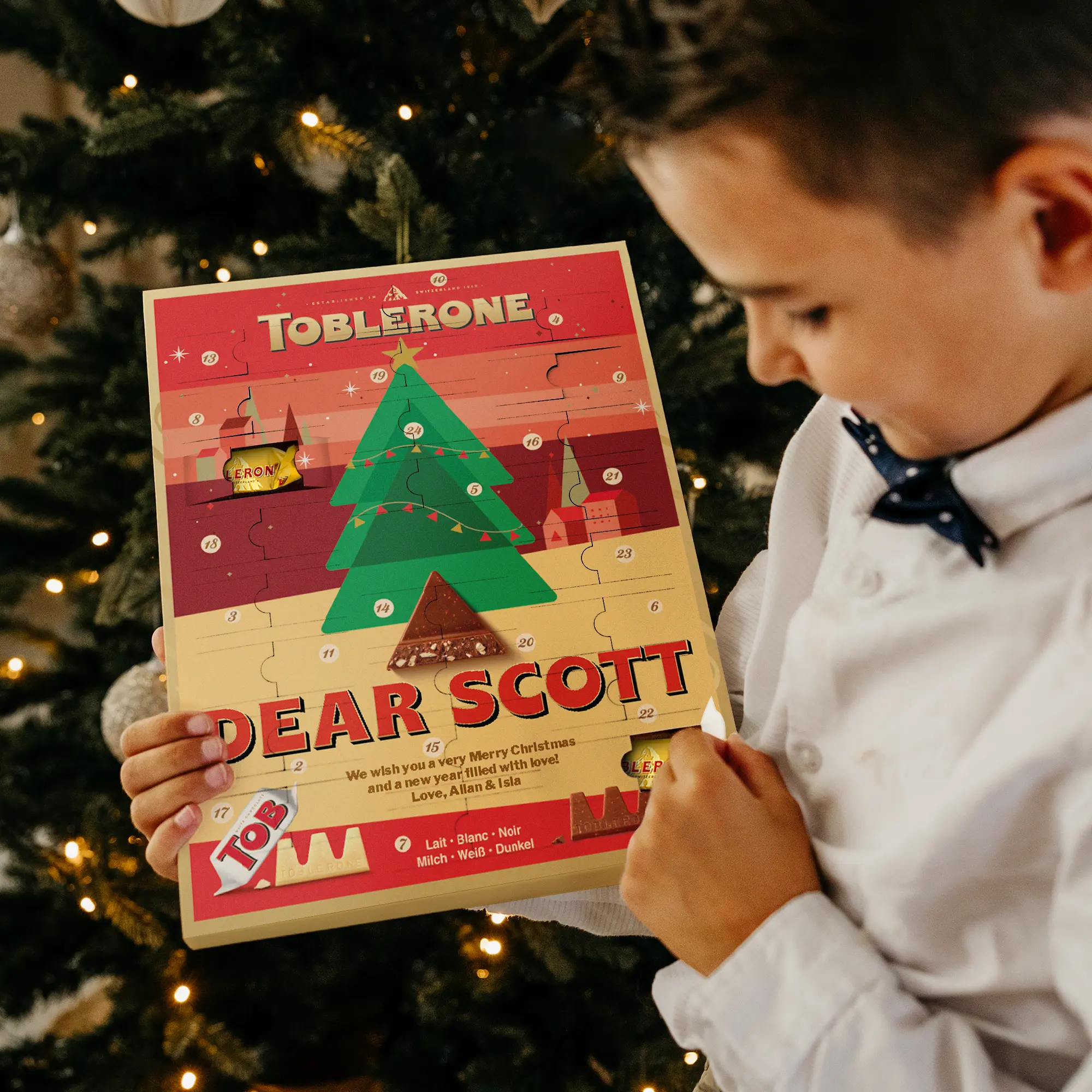 Este calendario de Adviento combina la tradición navideña con el irresistible sabor de Toblerone, creando una experiencia de regalo memorable y deliciosa. La personalización añade un toque especial que lo convierte en un obsequio verdaderamente único.