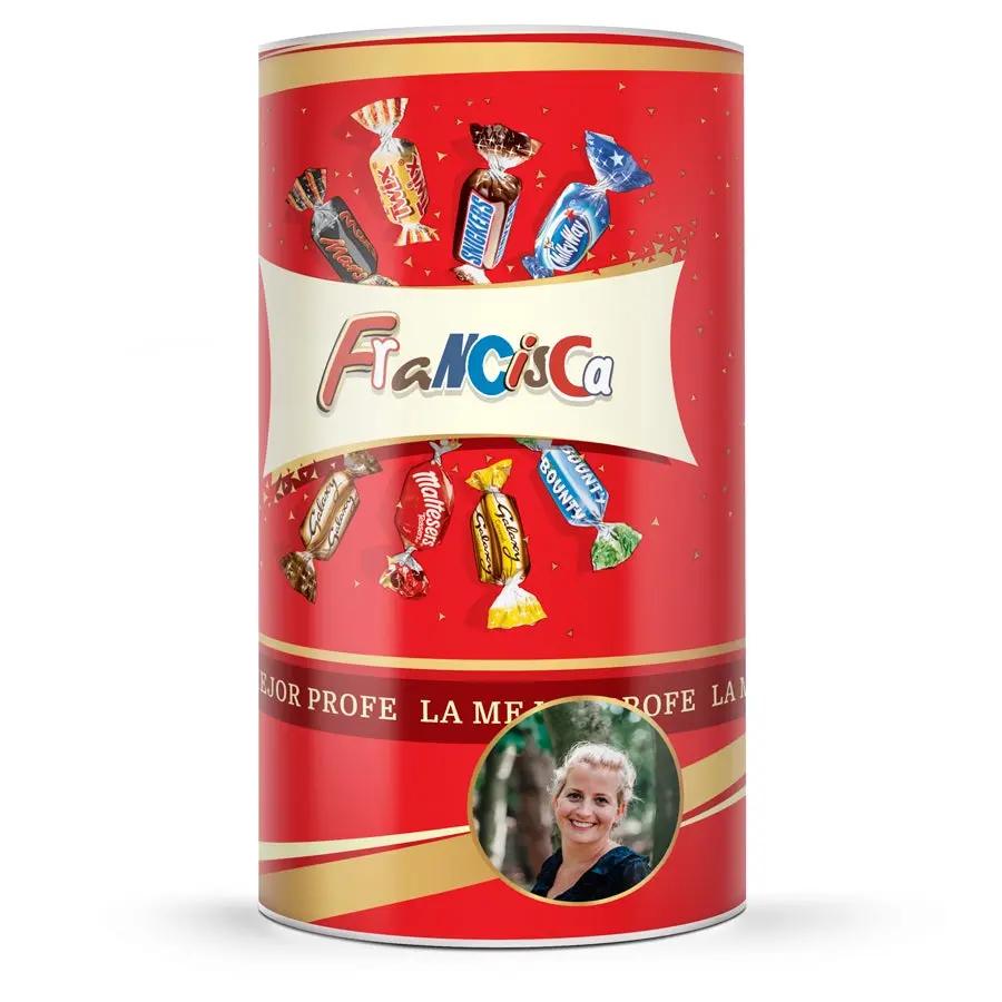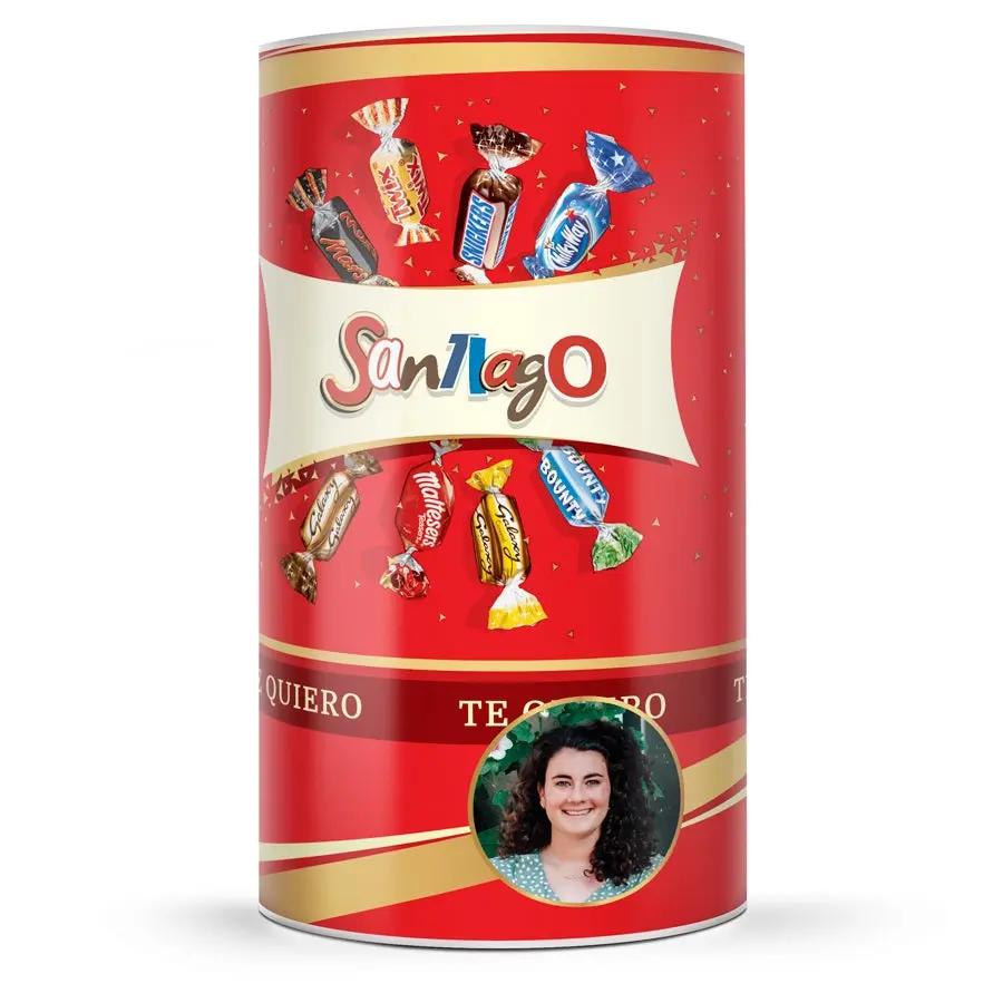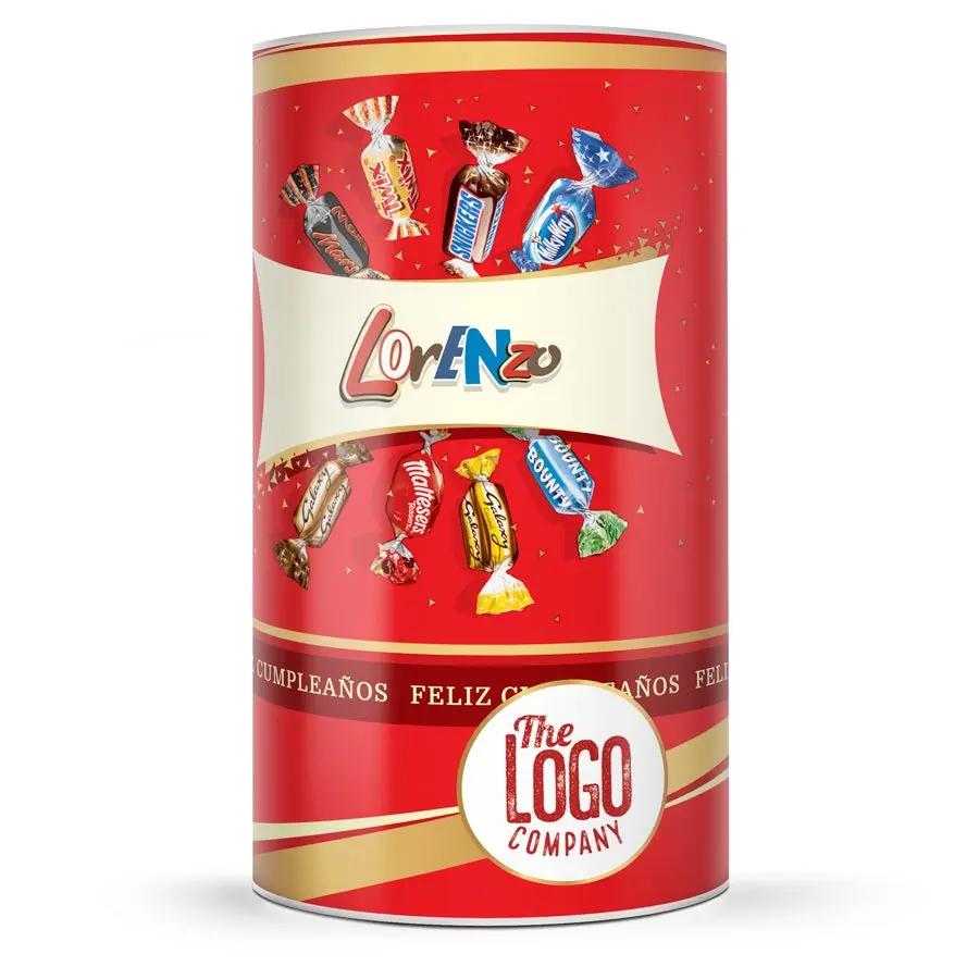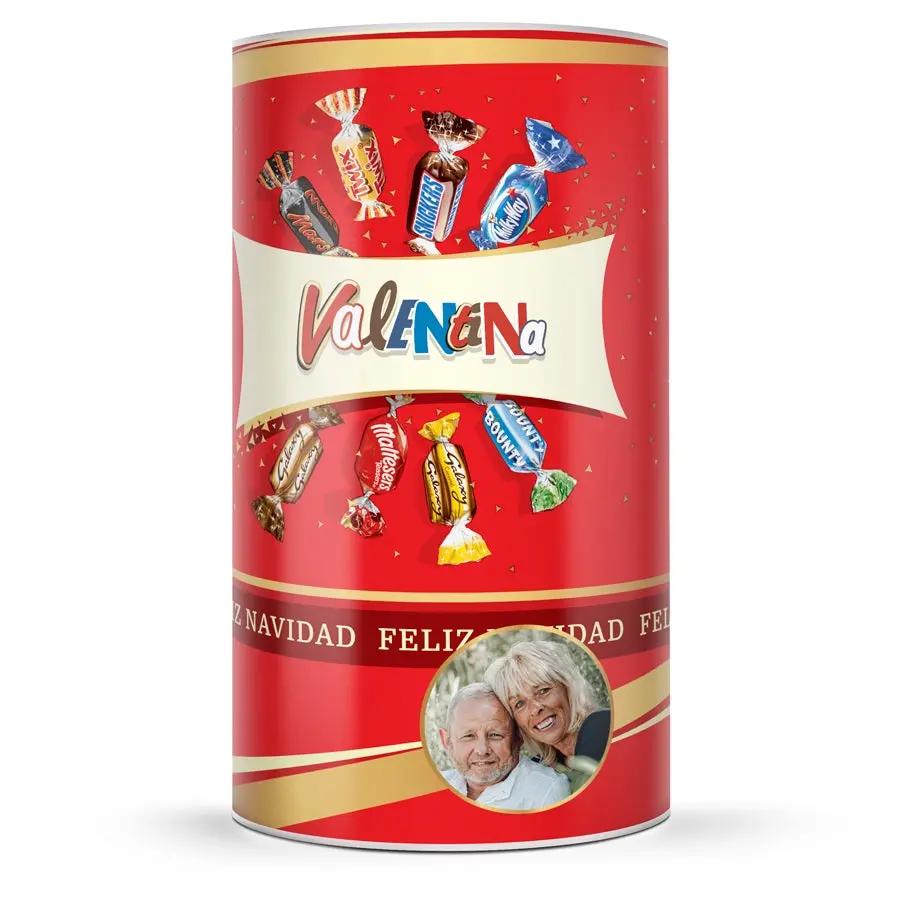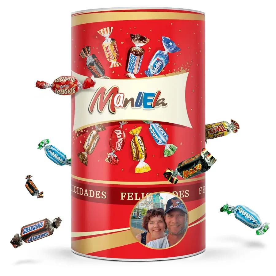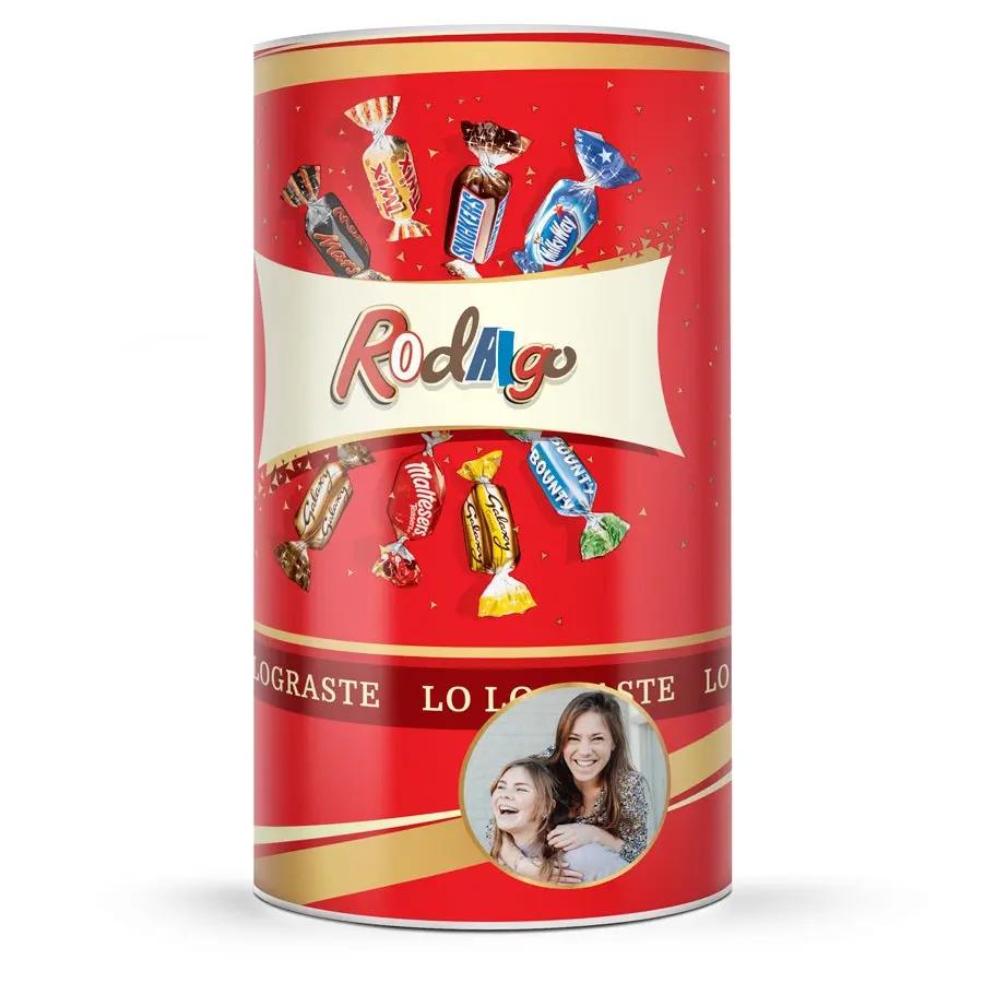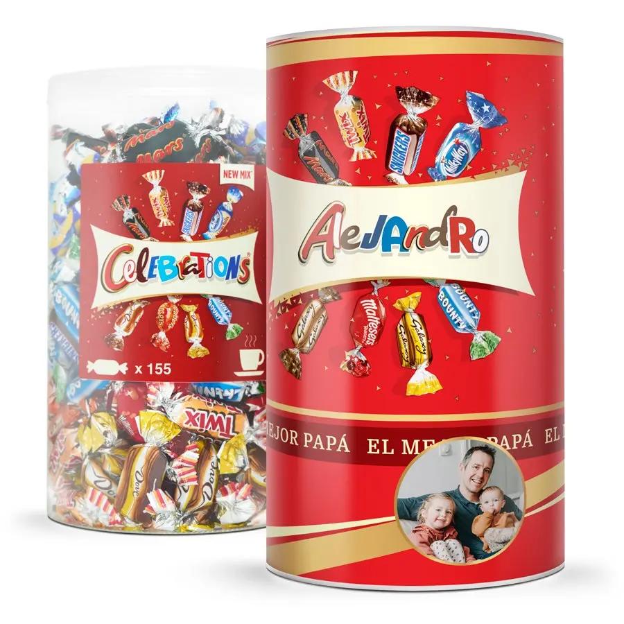Experiencia Completa: Tubo de 312 gramos de chocolates Celebrations variados, personalizable con foto y texto.