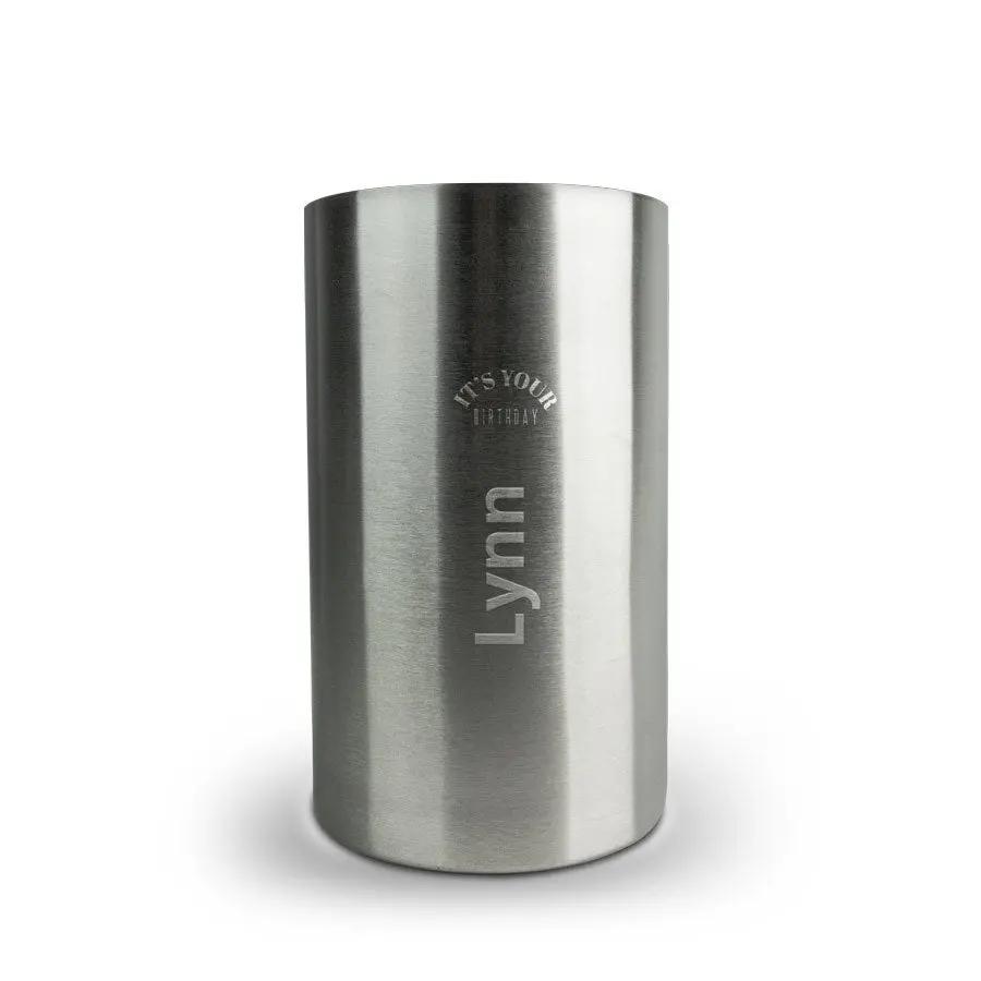 Si buscas un regalo personal lujoso, elige este enfriador de vino grabado con el nombre o texto de tu elección.