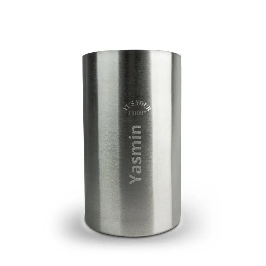 Enfriador de vino de acero inoxidable con grabado personalizado. Perfecto para conocedores del vino, anfitriones elegantes y ejecutivos que aprecian los detalles. Ideal para cumpleaños, aniversarios y celebraciones corporativas. Un regalo que combina funcionalidad y personalización, creando un recuerdo duradero.