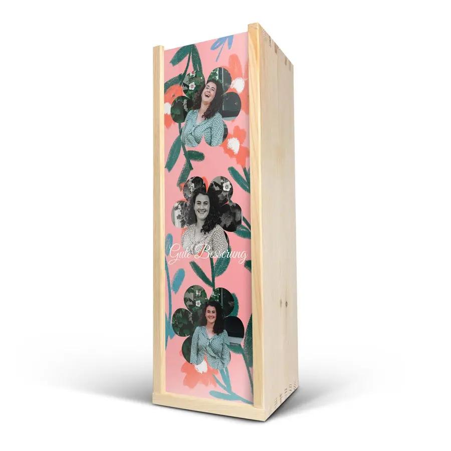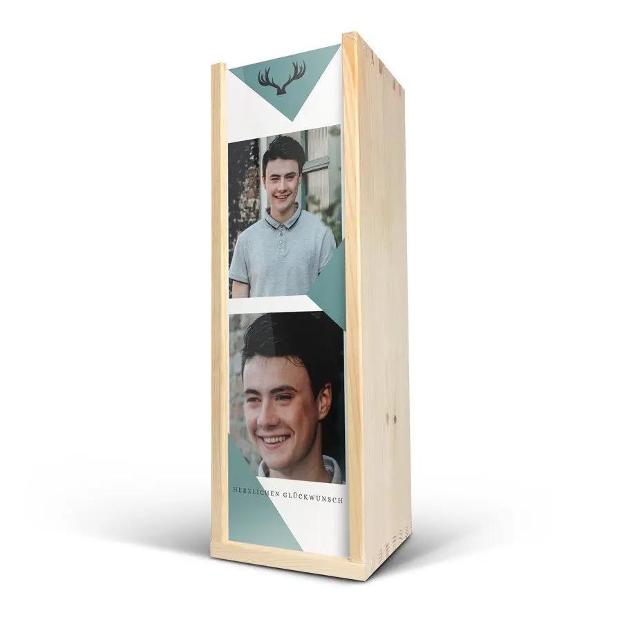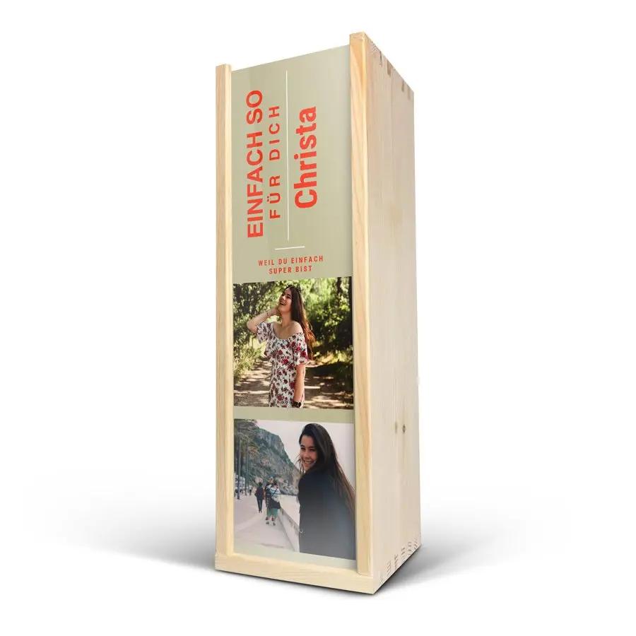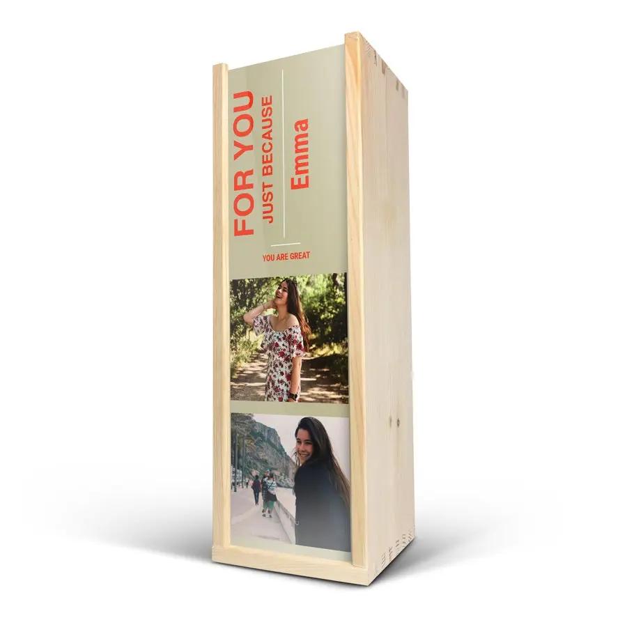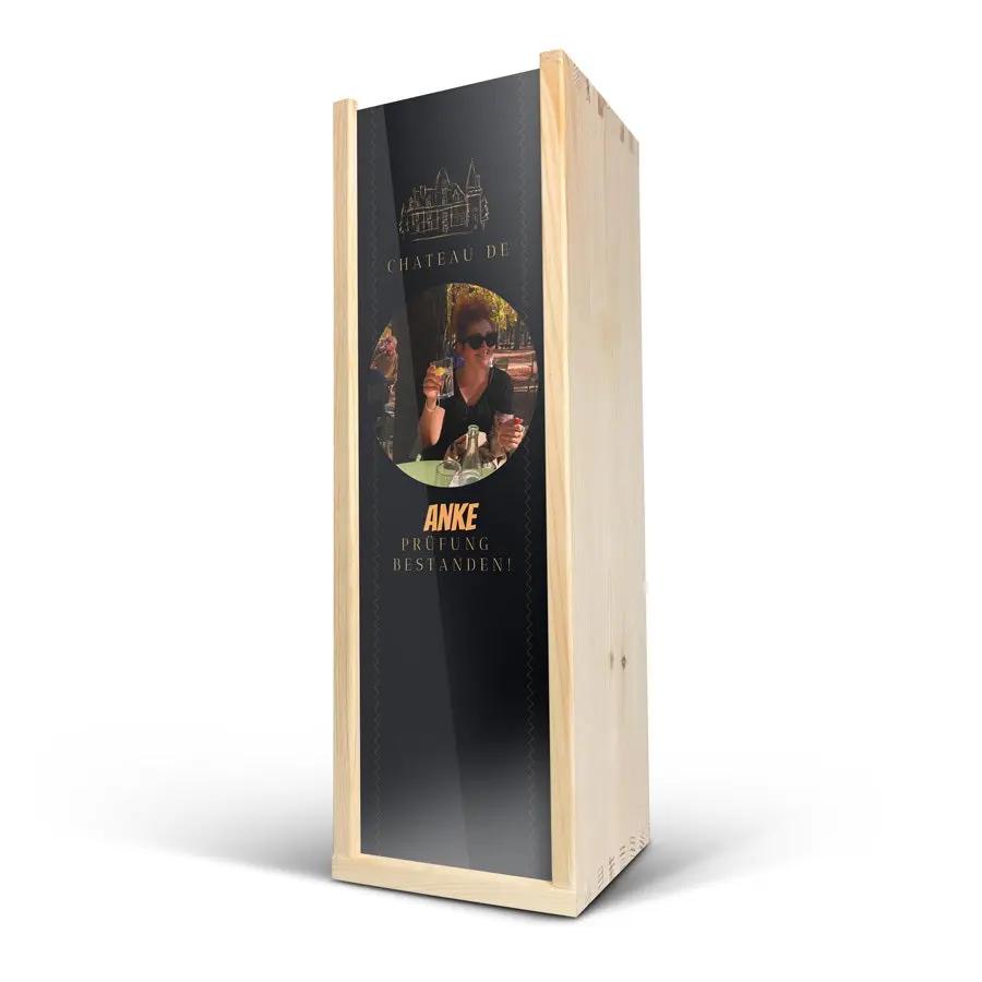 Botella de Moët & Chandon (375ml), estuche de madera grabado con nombre o texto personalizado.