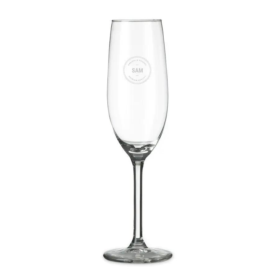Hermosa copa de champán grabada con texto o nombre. El regalo perfecto para celebrar cualquier ocasión.
