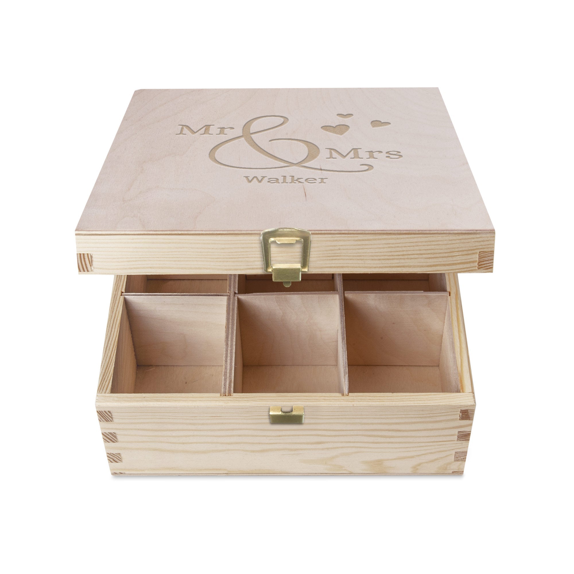 Boîte à thé en bois avec couvercle gravé