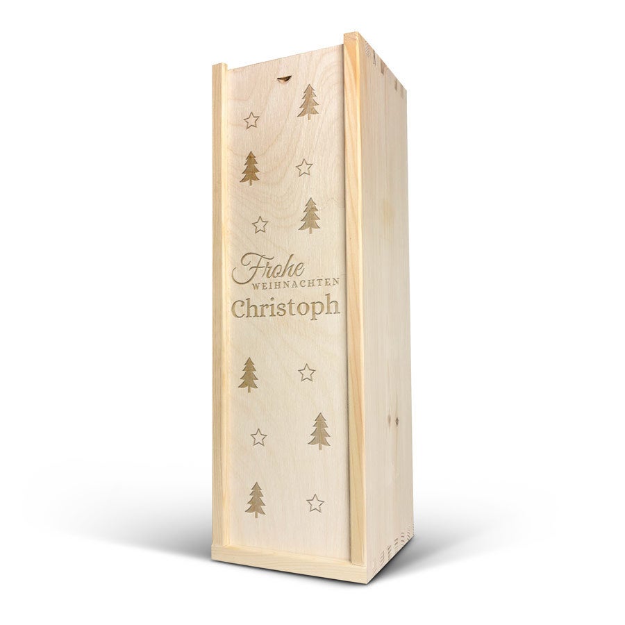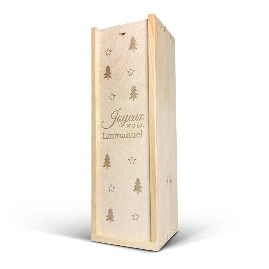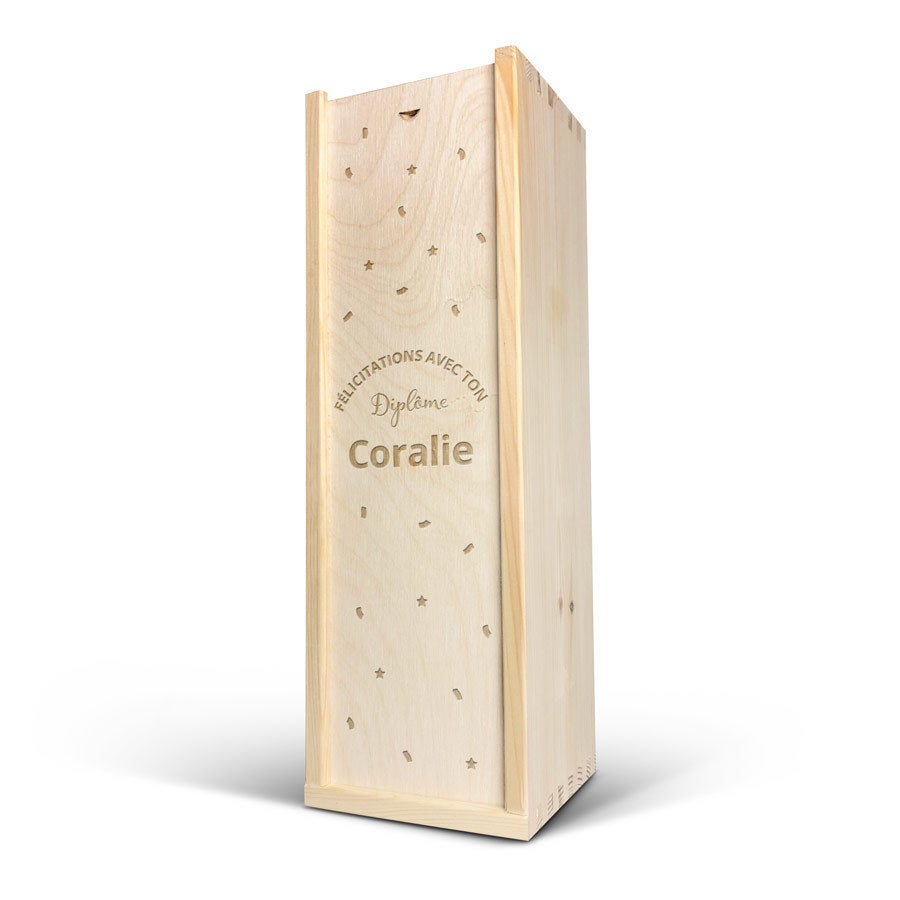 - Emplacement de la personnalisation : sur le couvercle du coffret en bois