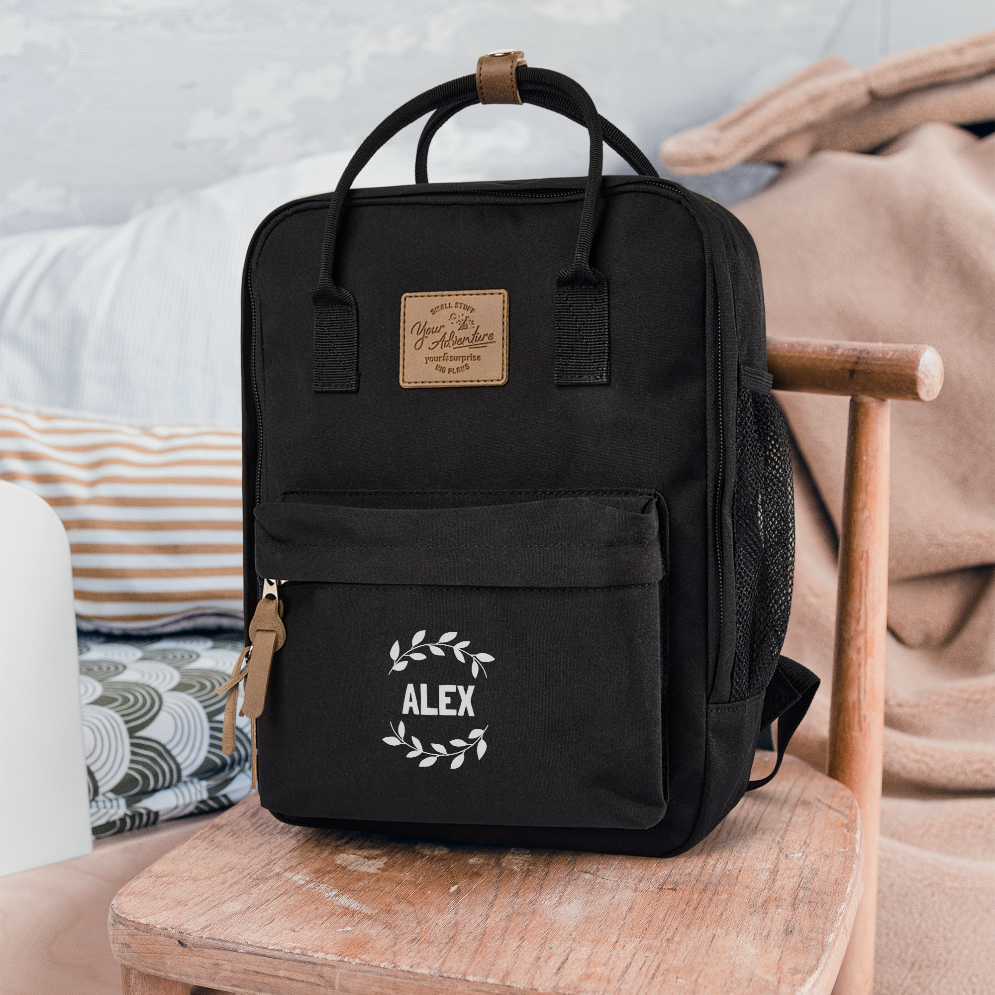 Plus d'informations sur le sac à dos pour enfant :Couleur : noirDimensions : 32 x 23,5 x 11 cmCapacité : 8 litresMatériau : 98 % polyester, 2 % cuir PUMarque : Beagles OriginalsPersonnalisation : avec le nomImpression : parfaite et en couleurInformations complémentaires : Le sac à dos dispose d'un compartiment principal spacieux, d'une section avant supplémentaire avec une fermeture éclair et une poche latérale pour une bouteille, ainsi que de nombreuses poches à l'intérieur et d'un compartiment rembourré adapté à une tablette.