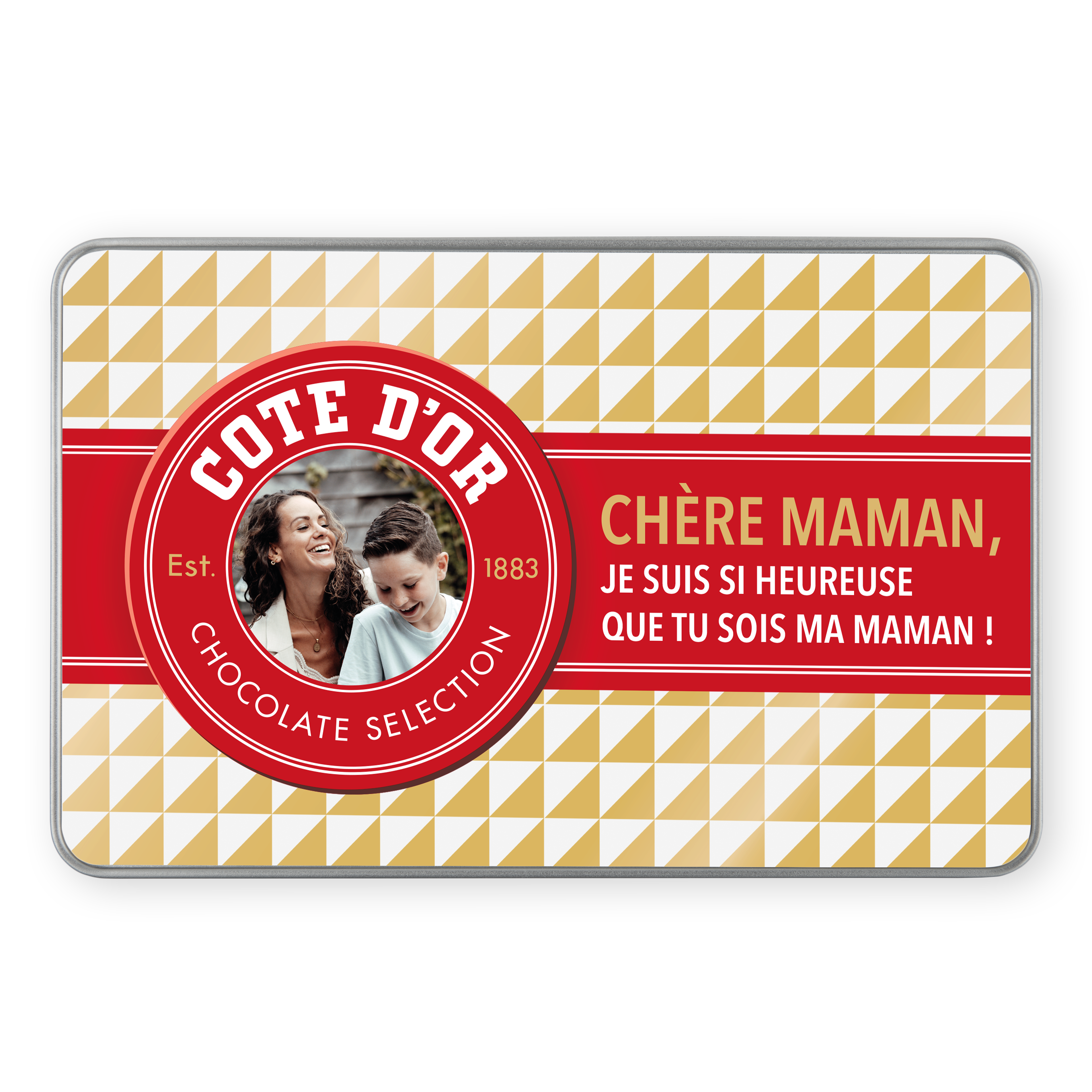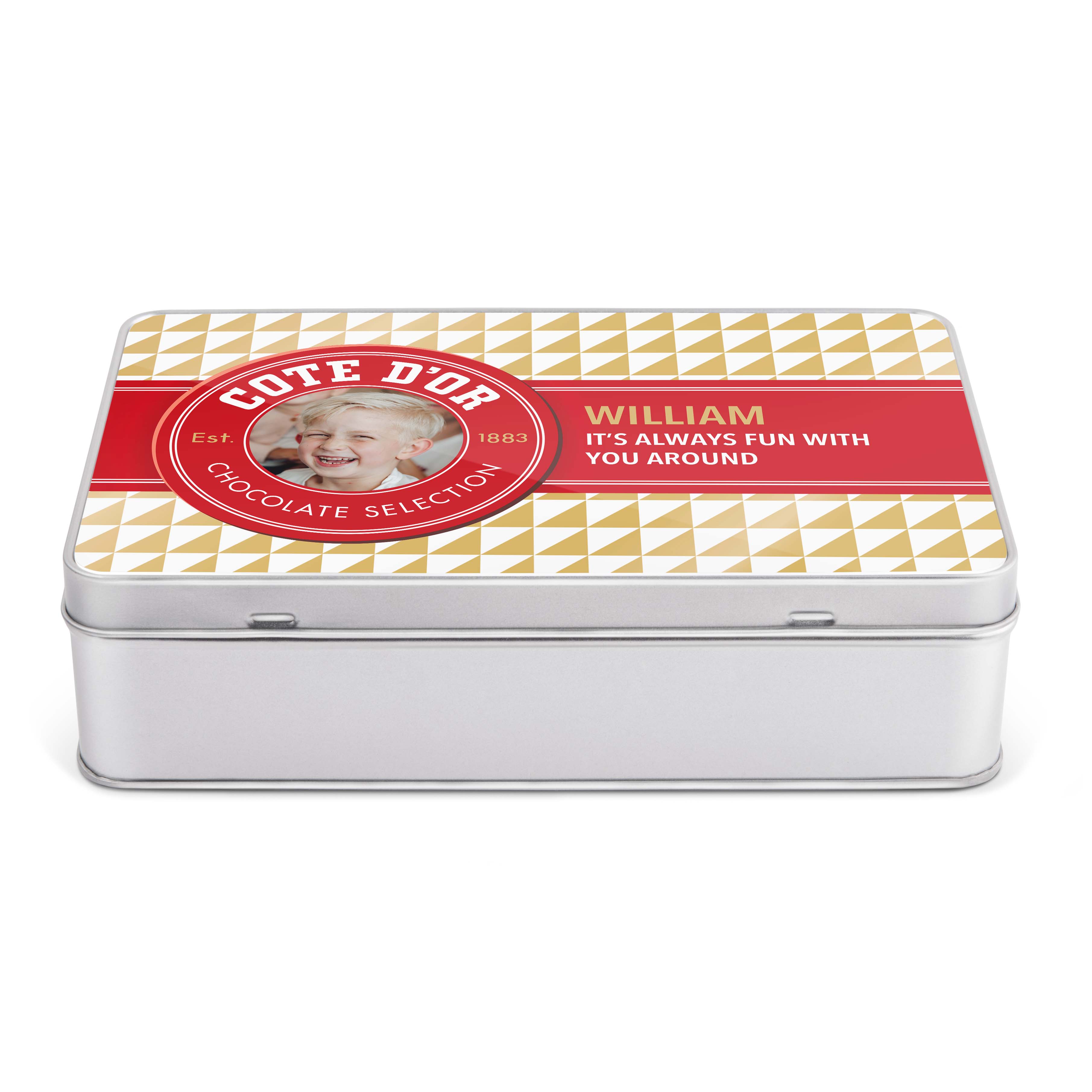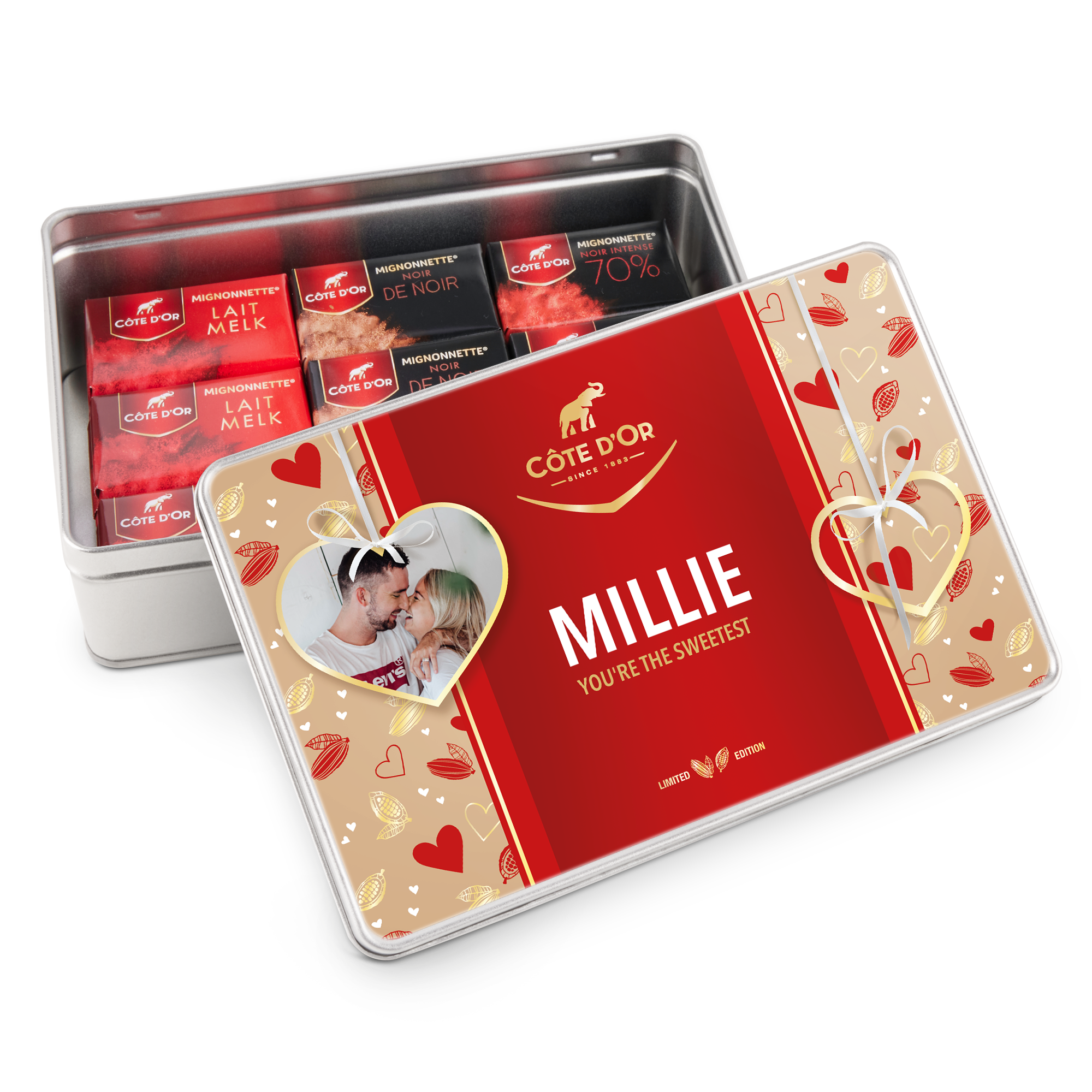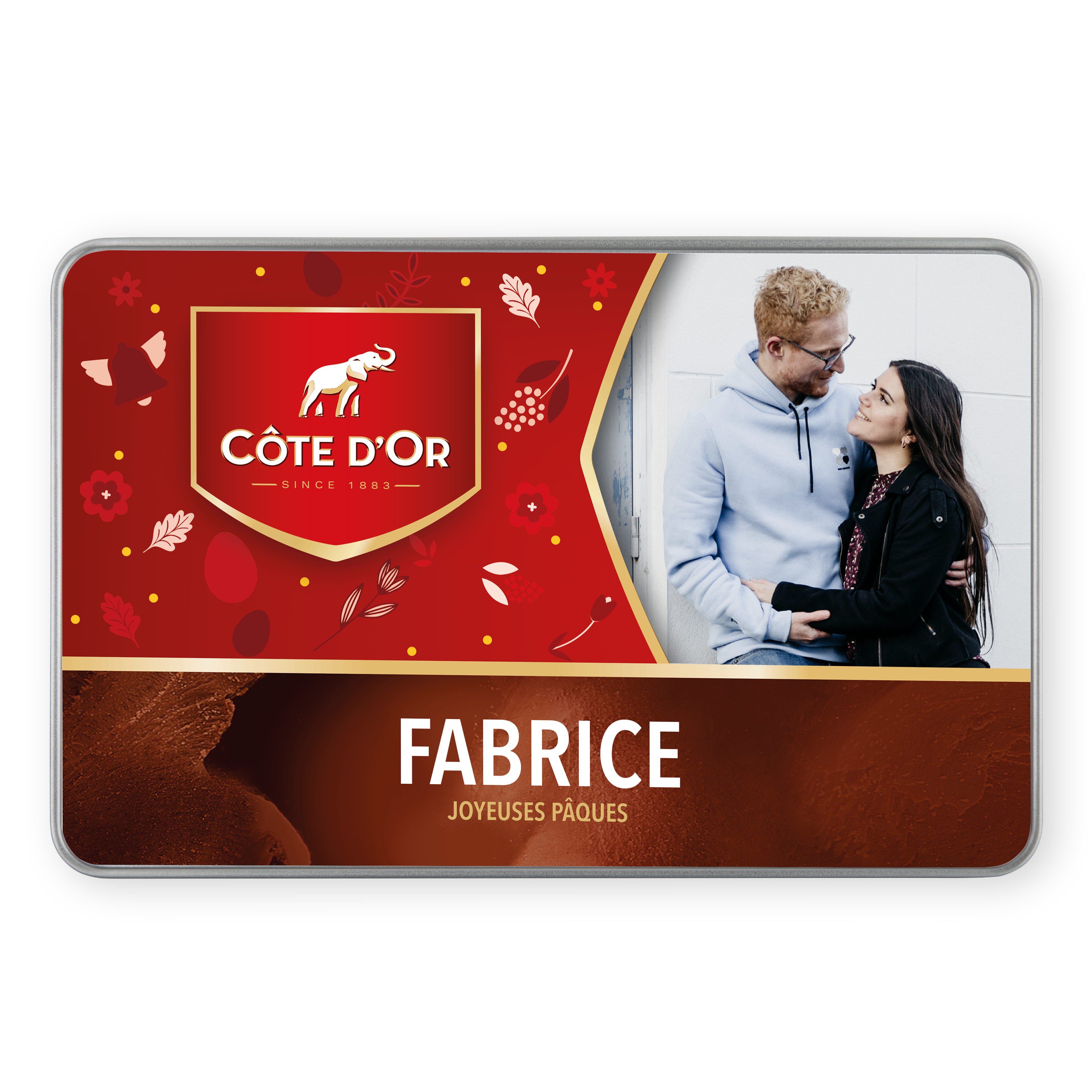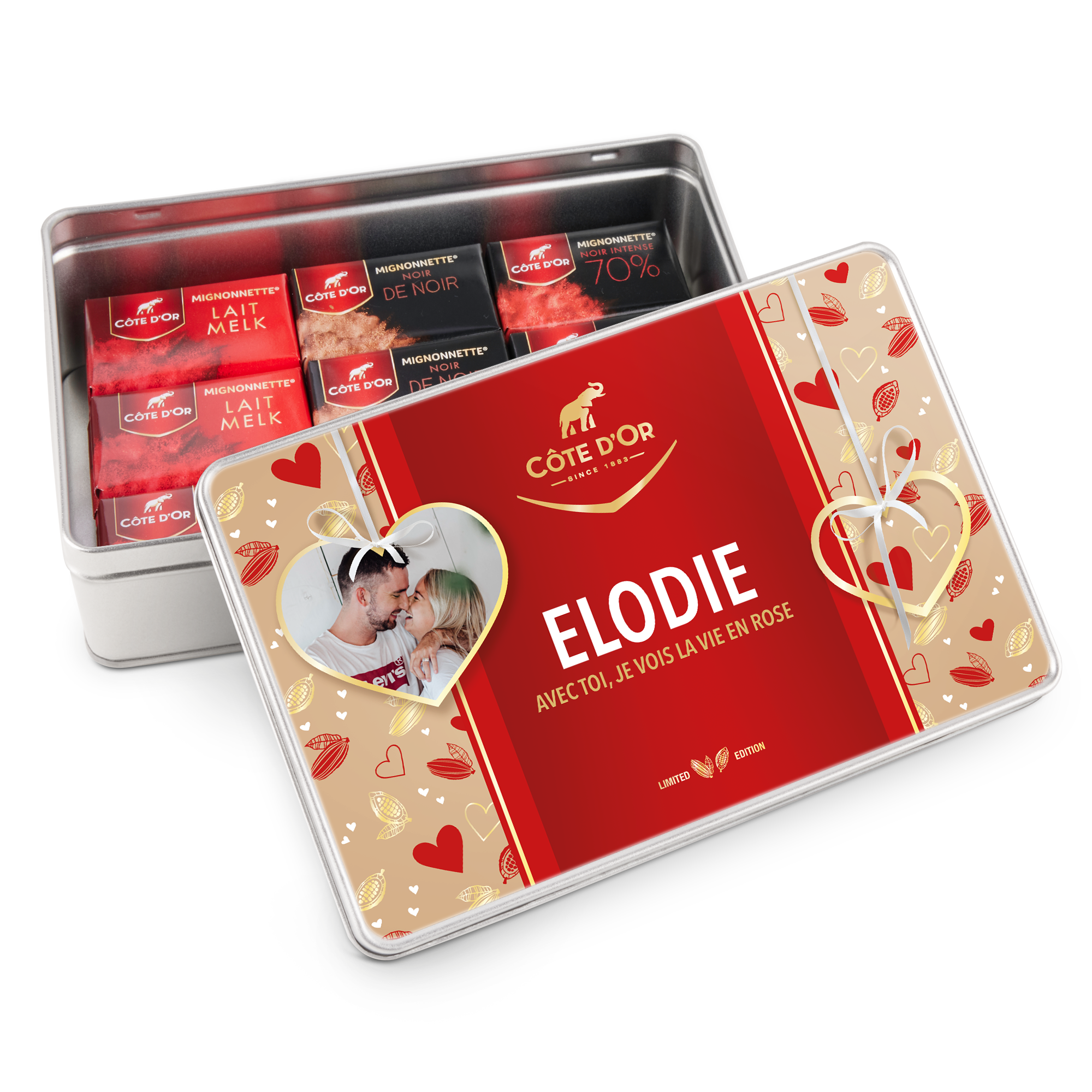 Boîte cadeau personnalisée garnie de chocolat Côte d'Or et ornée de la photo et/ou du nom de votre choix !