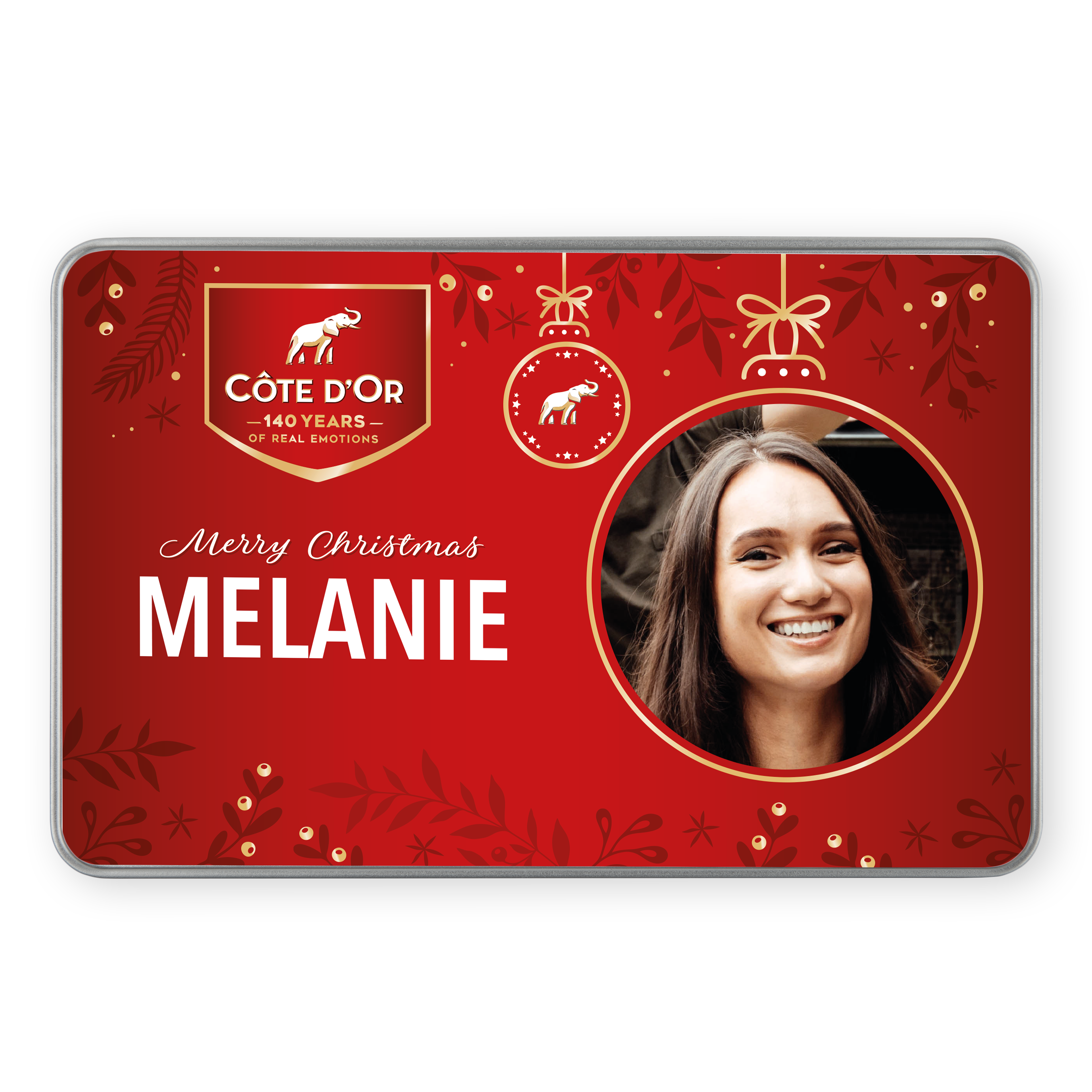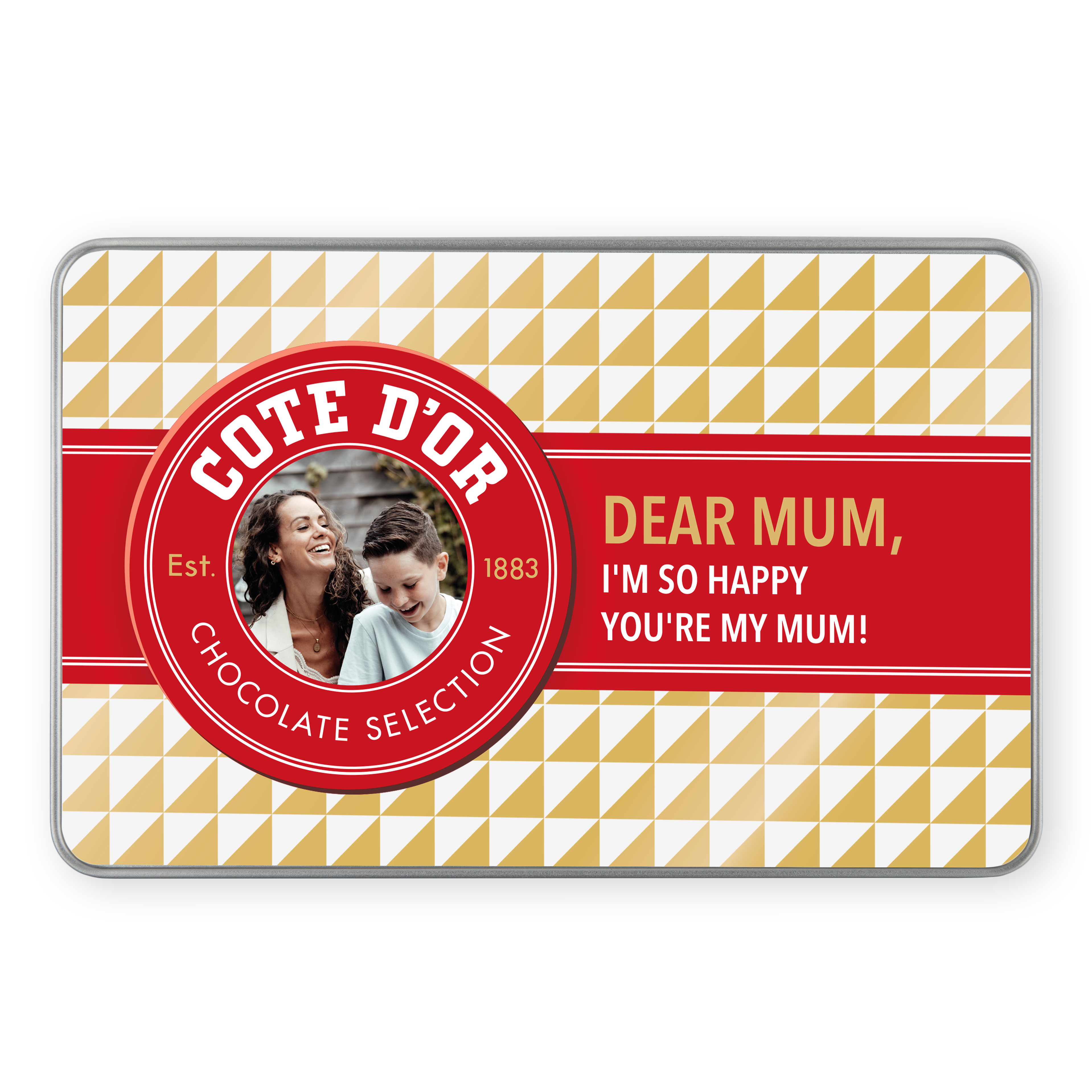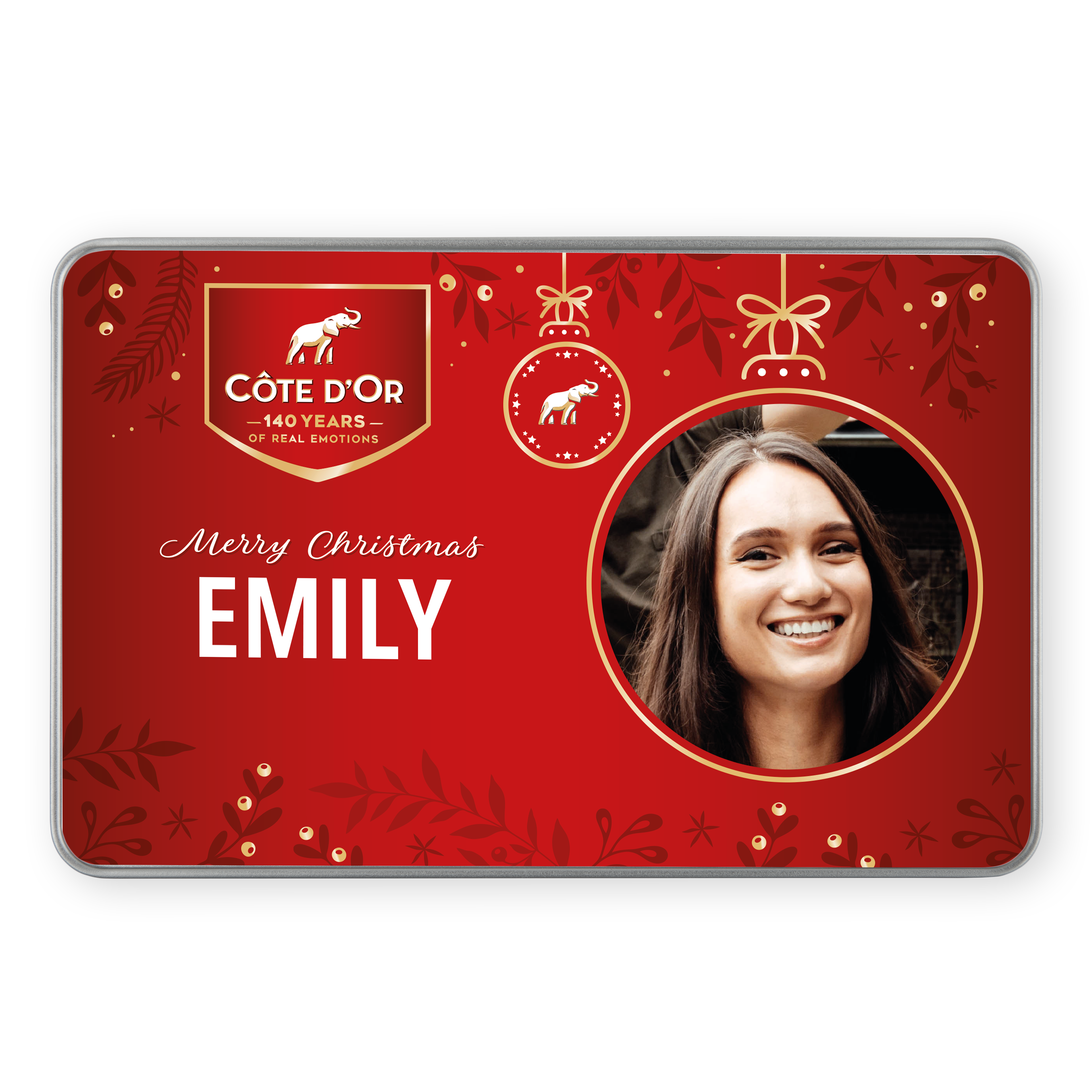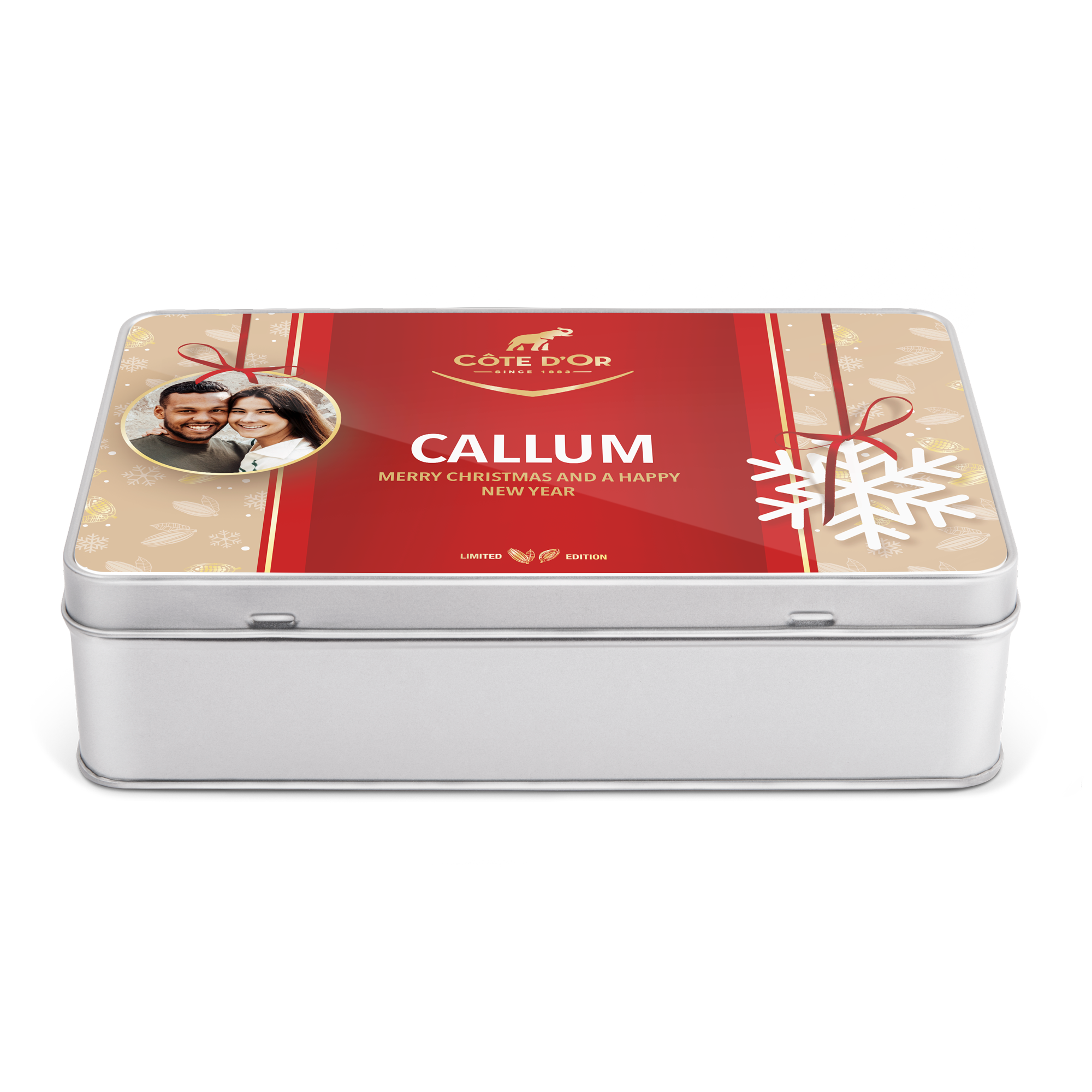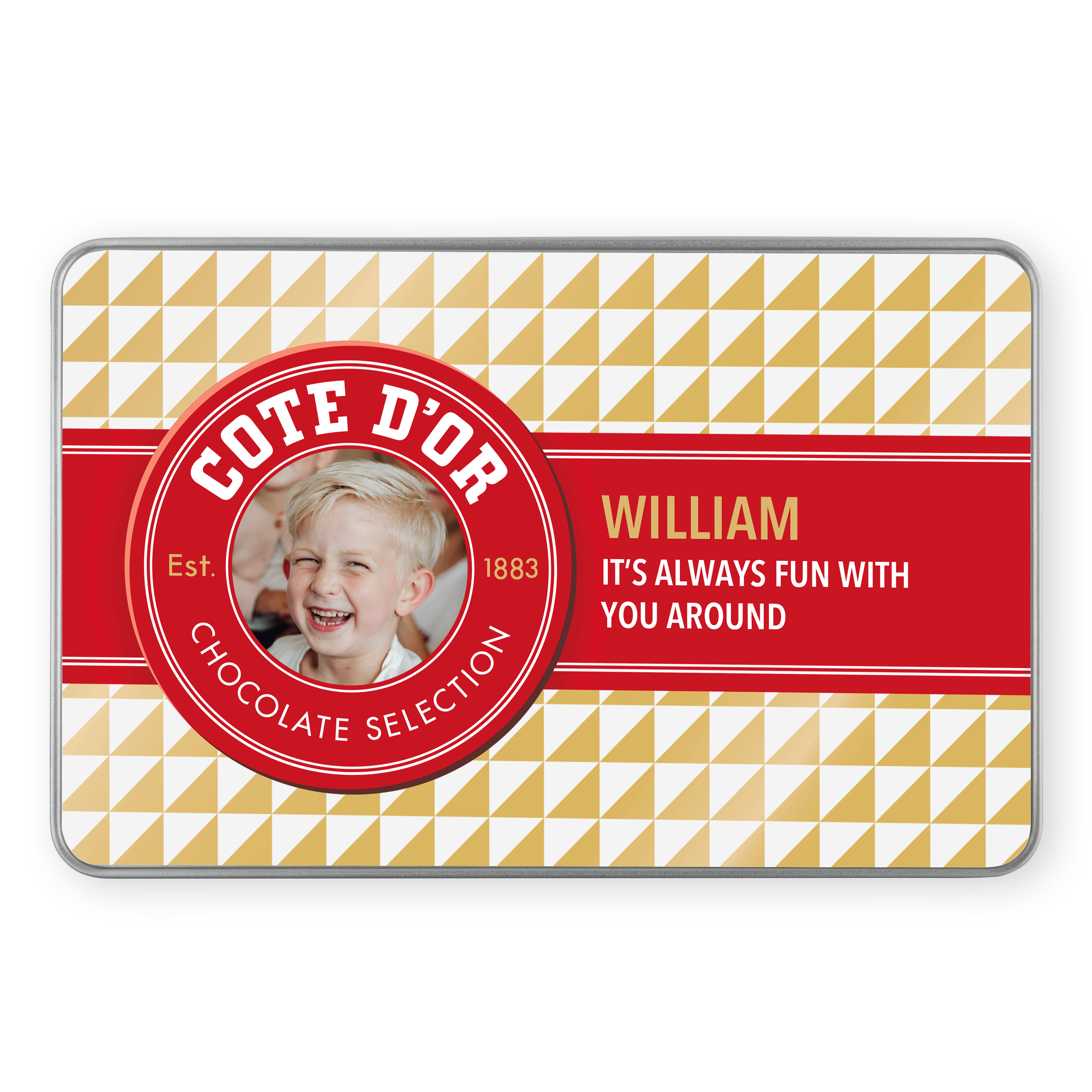 Boîte cadeau personnalisée garnie de chocolat Côte d'Or et ornée de la photo et/ou du nom de votre choix !