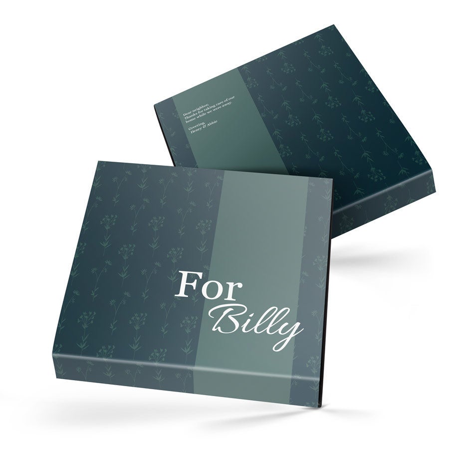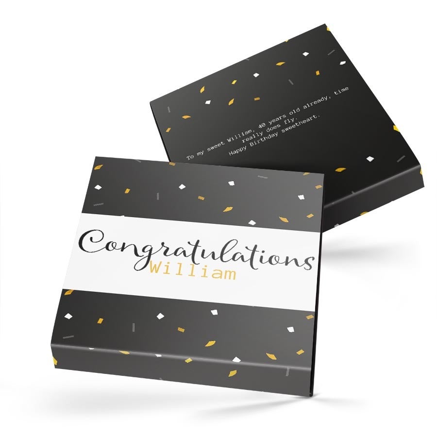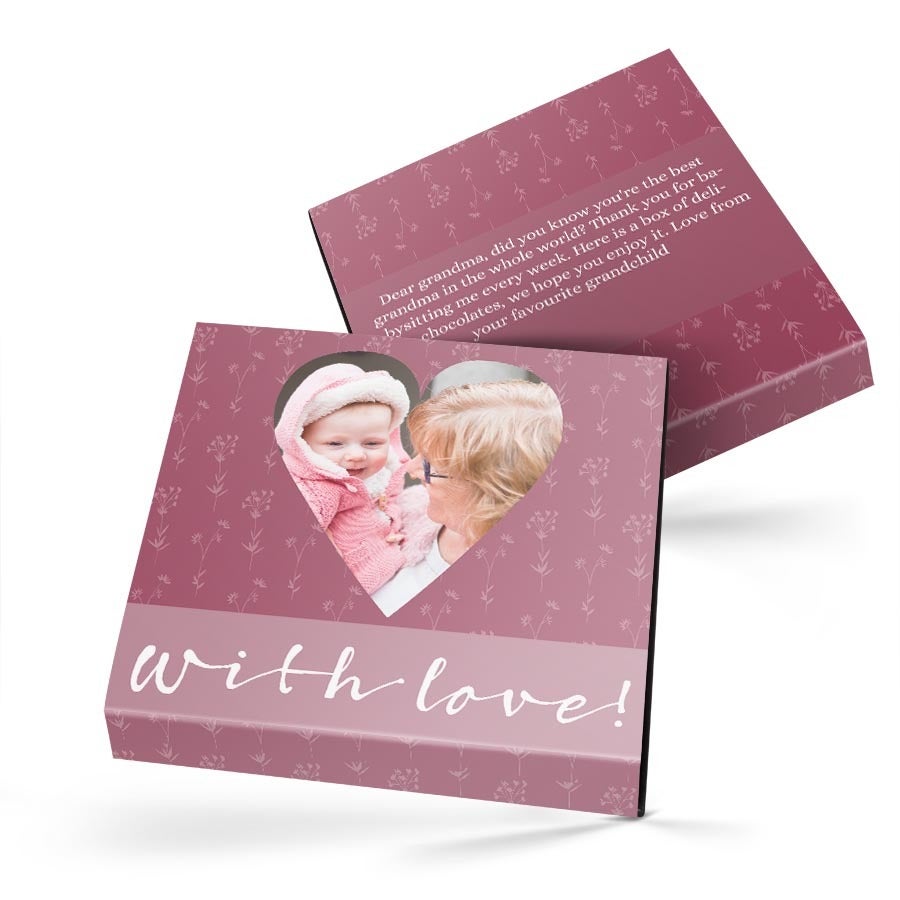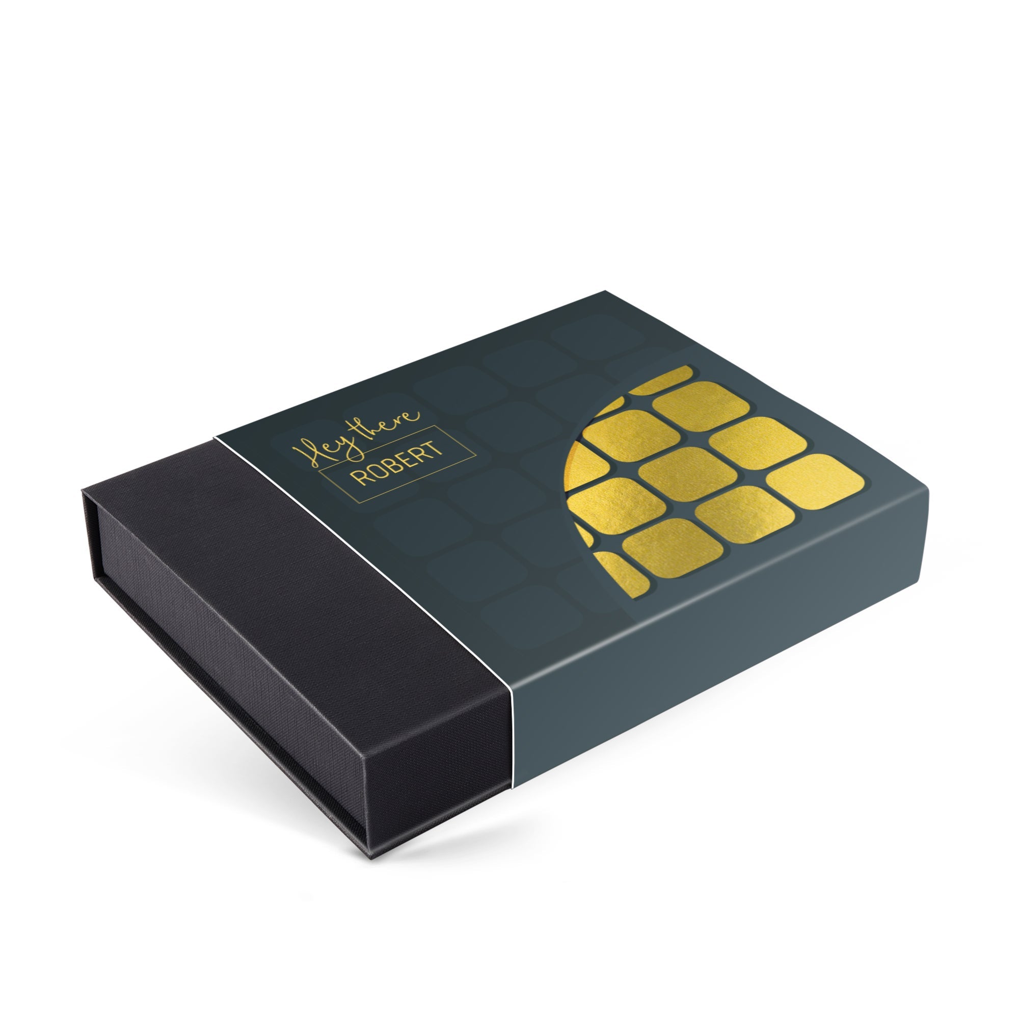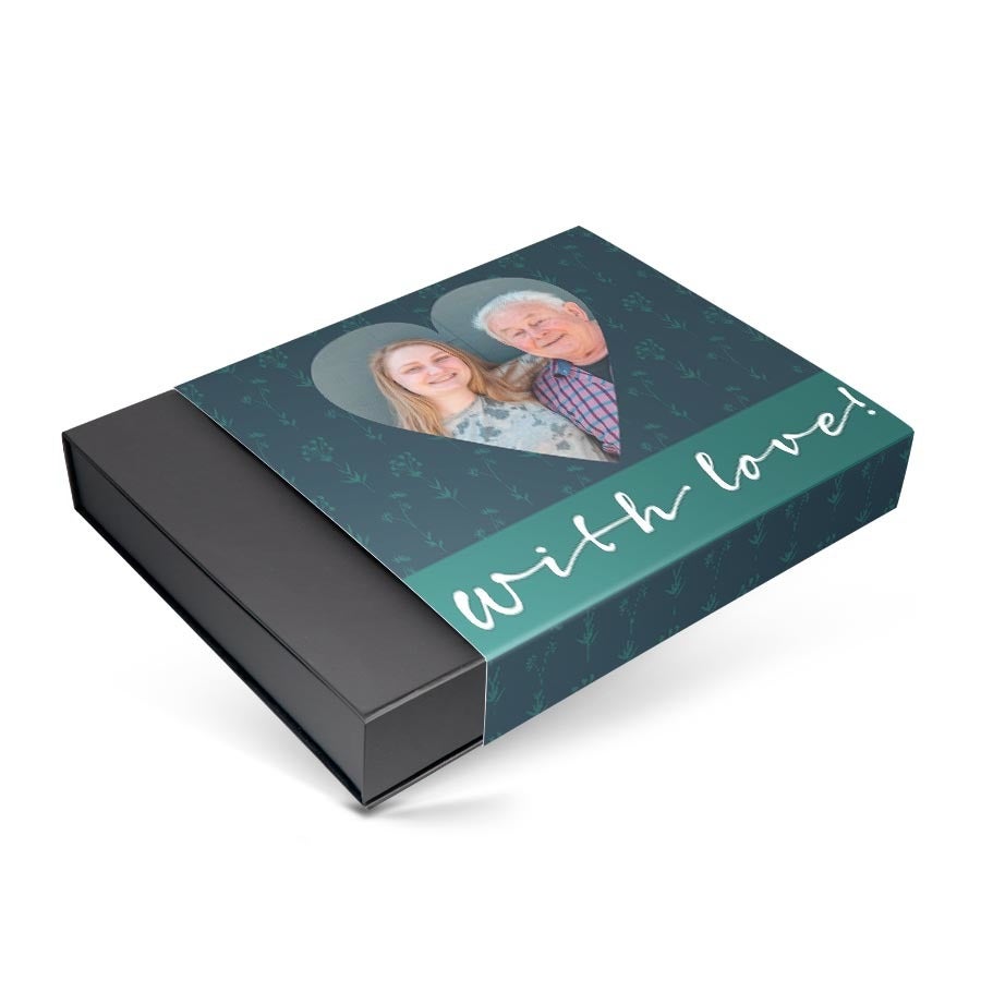 Surprenez vos proches avec des chocolats dans un luxueux coffret cadeau orné de votre design. De délicieux chocolats dans un coffret cadeau avec photo et nom !