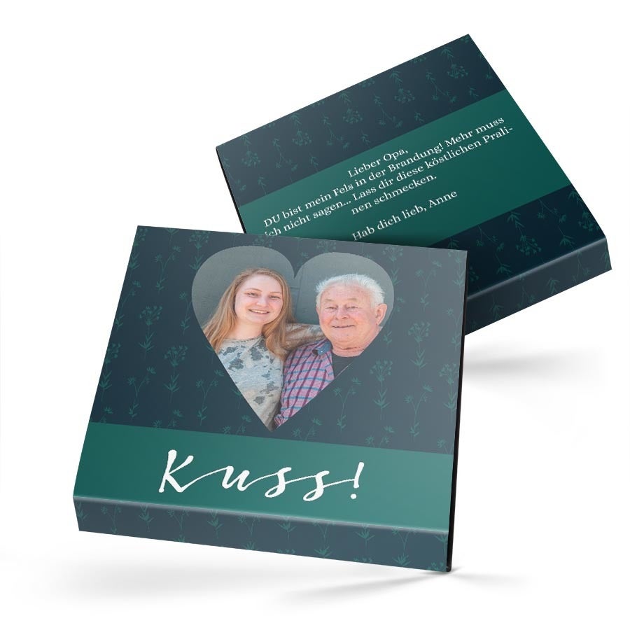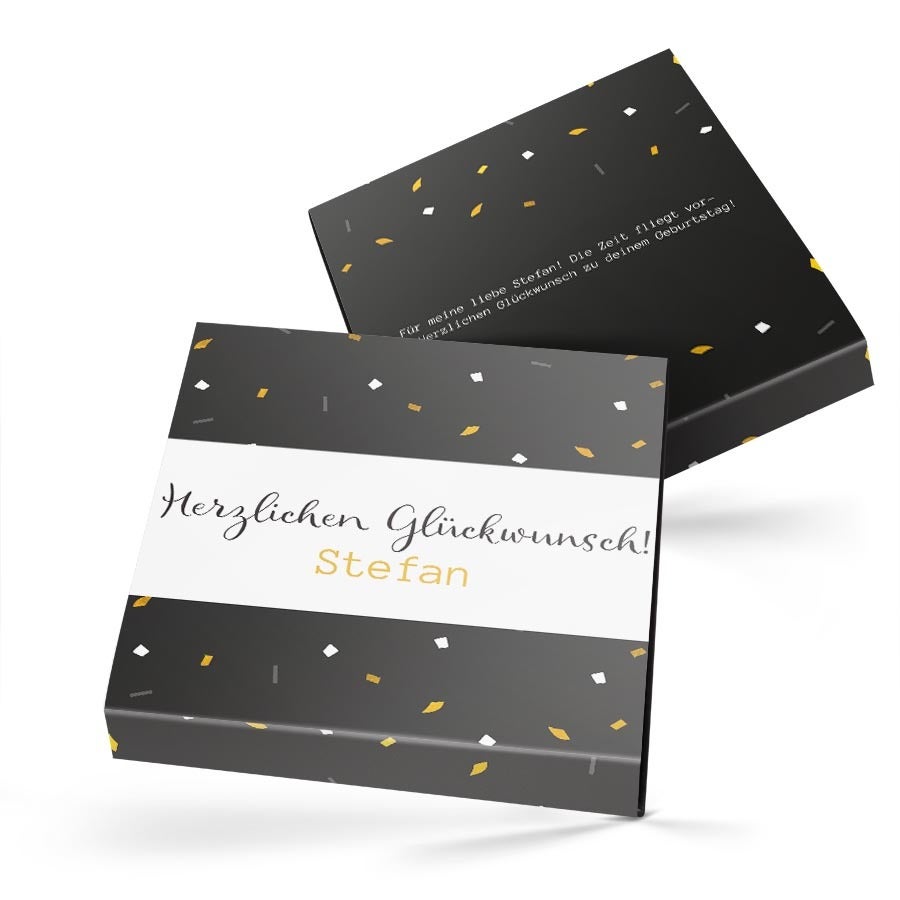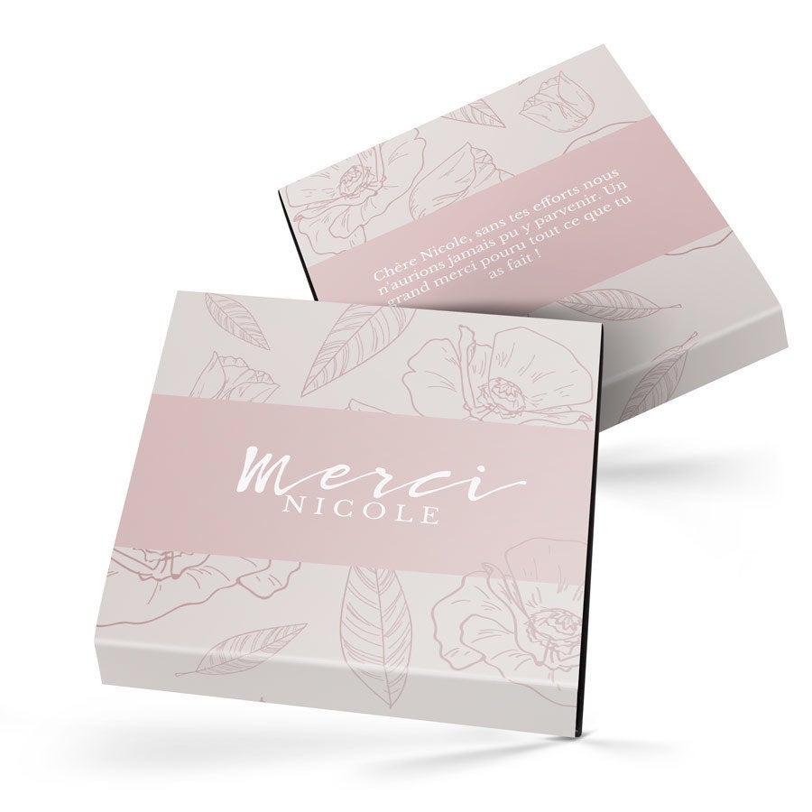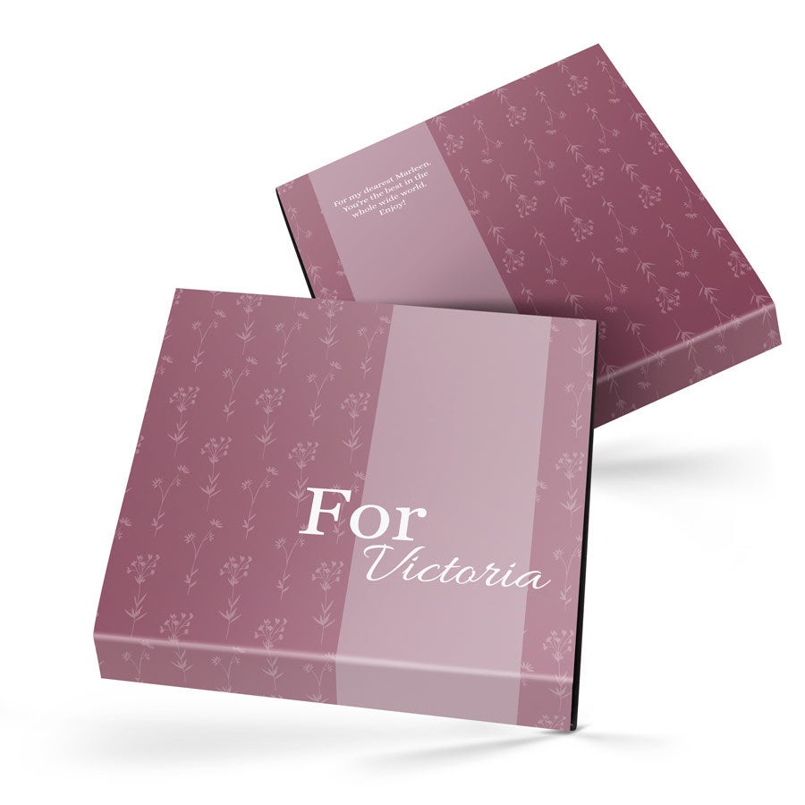 Surprenez vos proches avec des chocolats dans un coffret cadeau luxueux arborant votre design. De délicieux chocolats dans un coffret cadeau avec photo et nom !