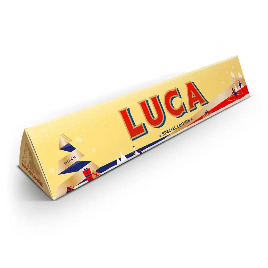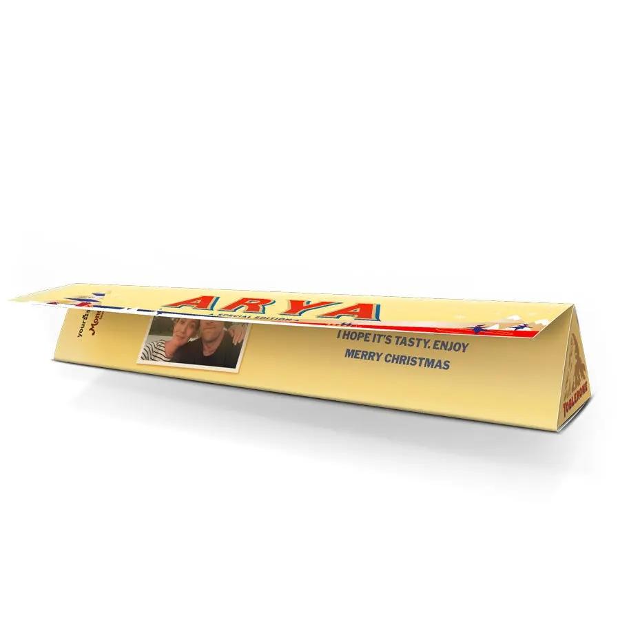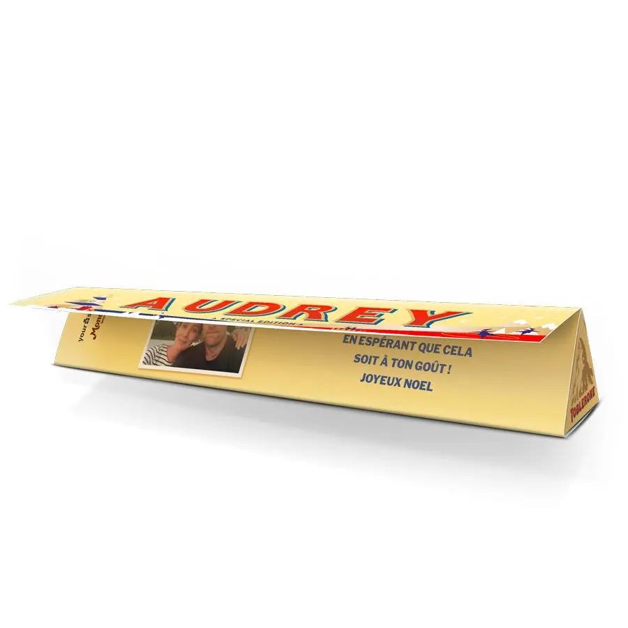 Surprenez les gourmands de votre entourage avec une barre Toblerone de Noël personnalisée, avec le nom, la photo et le message de votre choix !