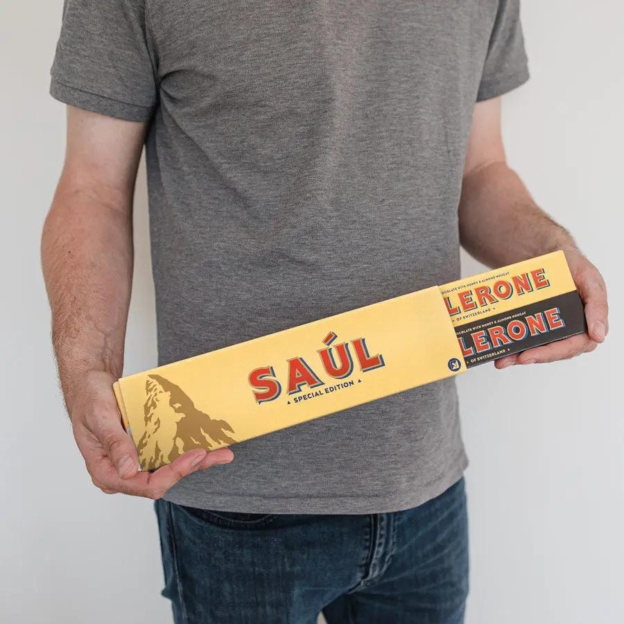 Cette barre Sélection Toblerone comprend 8 barres de chocolat Toblerone déclinées en 3 saveurs différentes. Personnalisable, elle arbore votre photo, votre nom et le message de votre choix !