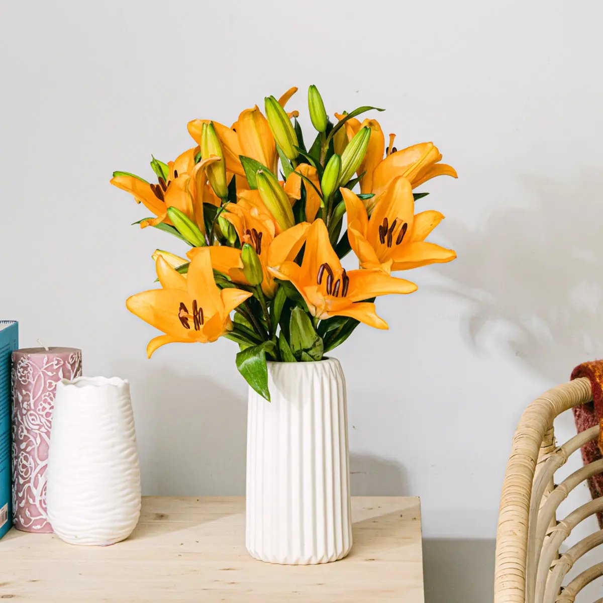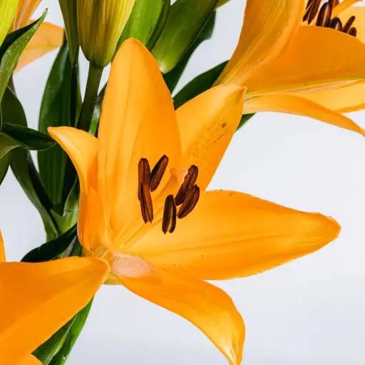 Célébrez chaque grand moment de votre vie avec vos proches et en compagnie des grandes fleurs du lis asiatique orange, dont les larges pétales évoquent l'amour, l'engagement et l'intensité avec laquelle nous abordons chaque tâche. Idéal pour… reconnaître les efforts fournis.