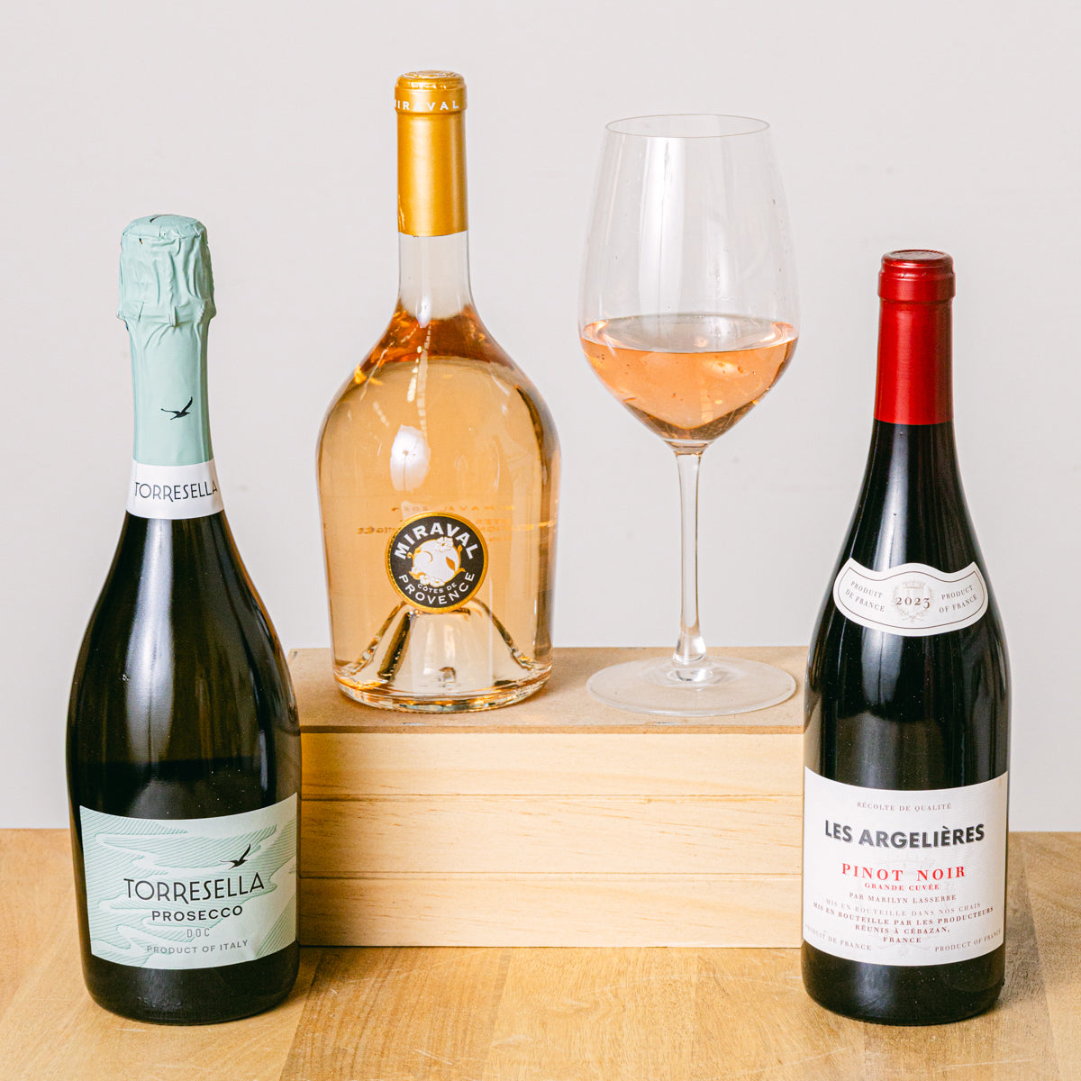 Offrez les saveurs uniques d'un bon vin avec ce coffret exquis : une mélodie complexe pour le palais. Une combinaison incroyable pour ceux qui osent tout essayer : du bouquet de fruits frais du rosé Miraval aux nuances de fruits rouges et de fumée du rouge Les Argelières. Comparez leur persistance en bouche à la fraîcheur acidulée du blanc Montecillo, et terminez votre dégustation avec le pétillant Torresella et ses incroyables notes aromatiques.