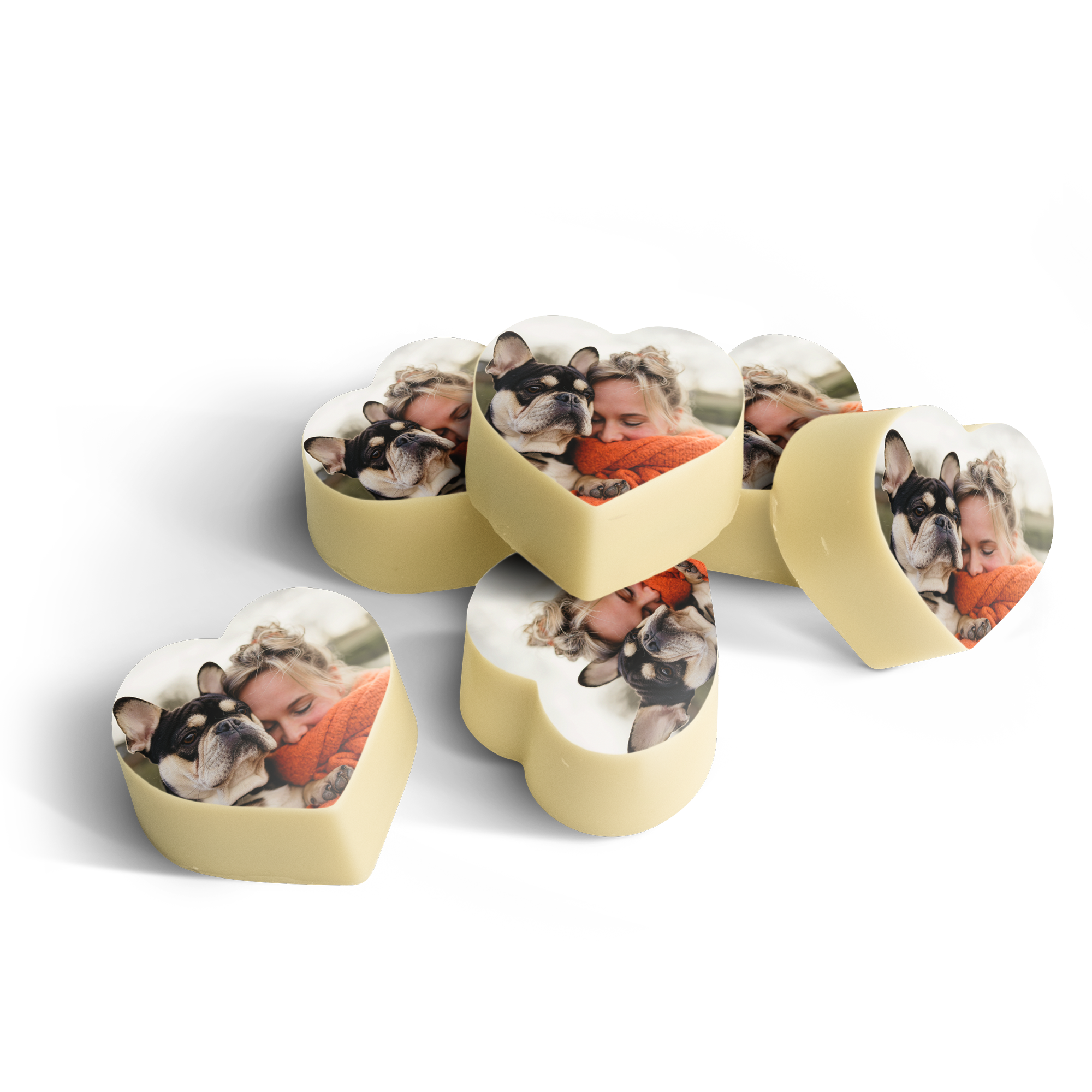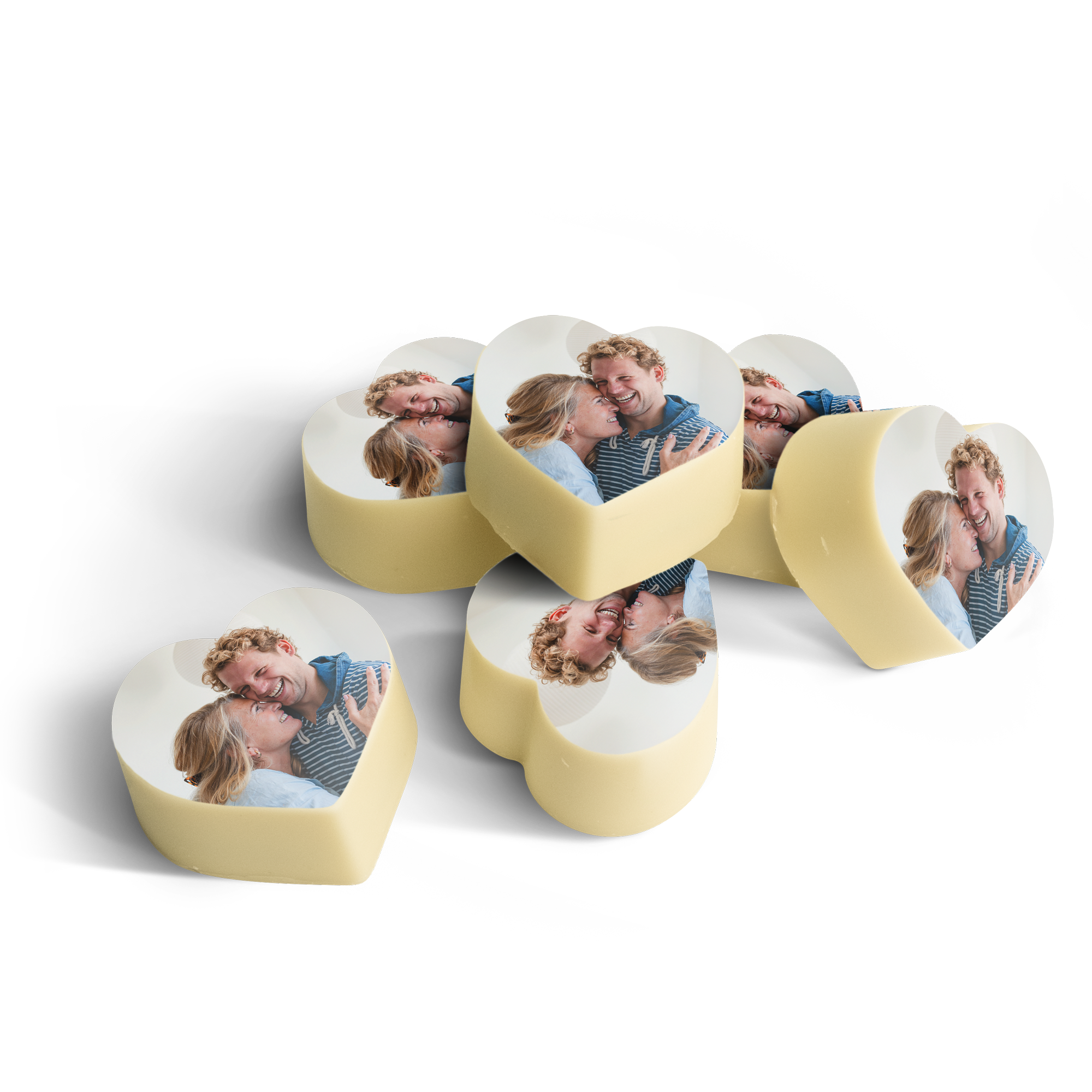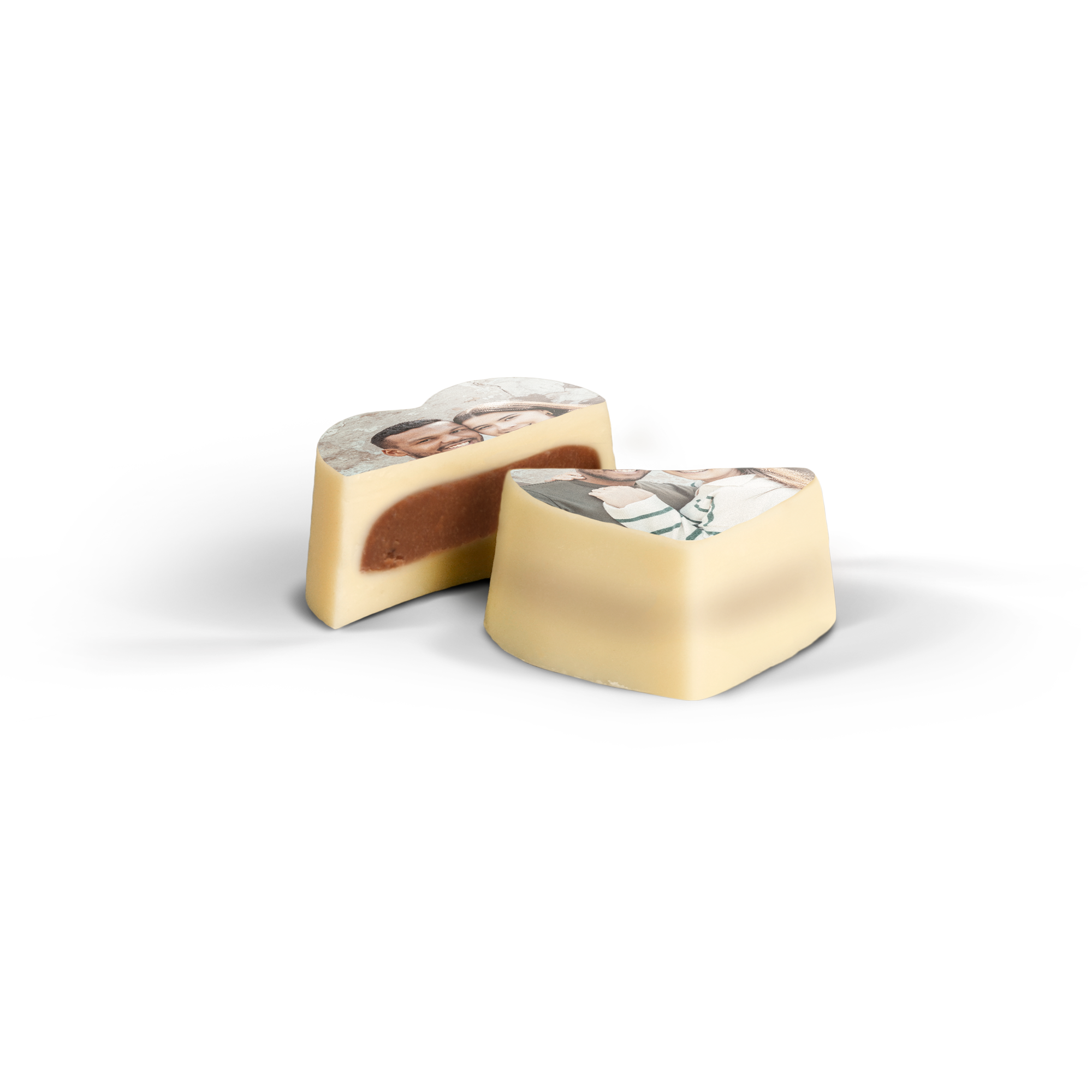 Mais informações sobre os bombons de chocolate em forma de coração personalizados:Quantidade: conjunto de 12 chocolatesChocolate: chocolate ao leite com uma camada de chocolate branco por cimaFormato: em forma de coraçãoDimensões por chocolate: 2,7 x 1,6 cm, pode variar ligeiramente por chocolateRecheio: pralinePersonalização: impresso com foto ou logotipoImpressão: impressão comestível em cores vivasQuando a temperatura externa estiver acima de 25 graus Celsius, não poderemos garantir a qualidade do chocolate.Importante: Não é possível usar fotos diferentes para cada chocolate individualConservação: Pode ser armazenado por até 10 semanas em um local fresco e escuro, entre 14-18°C. Informações sobre alergias: contém soja, leite e pode conter traços de nozes e glúten.Ingredientes:Bombons de chocolate com recheio de avelã e impressão comestível: açúcar, avelãs, massa de cacau, manteiga de cacau, leite em pó integral, emulsificante (lecitina de soja), aroma natural de baunilha.Impressão comestível: amido de milho, amido modificado: E1422, amido de batata, água, proteína de frango em pó, leite em pó desnatado, azeite, sal, umectante E422, emulsificante: E433, corante: E102, E110, E122: pode afetar negativamente a atividade ou concentração em crianças, E133, E151Cobertura: E904